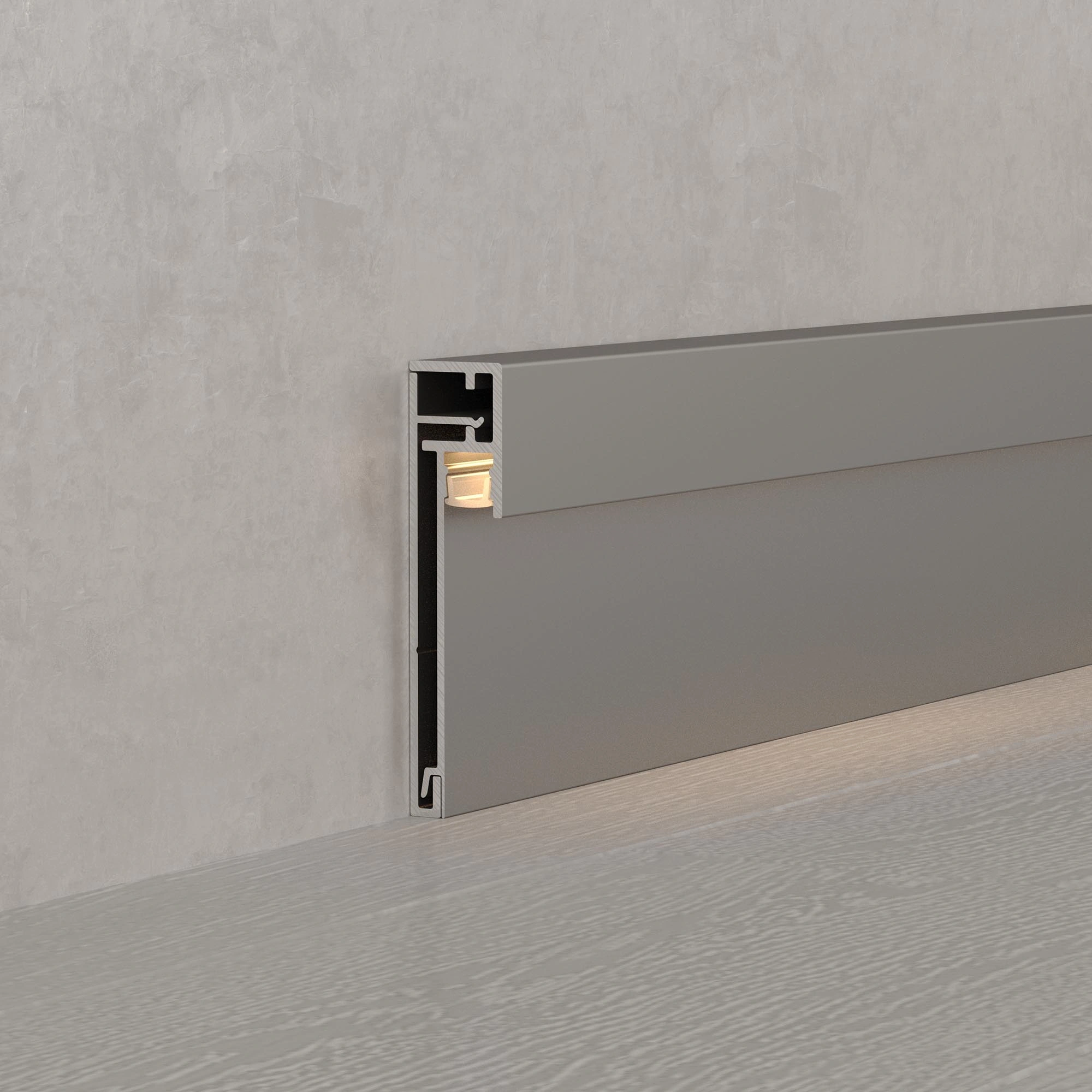 Накладной двухкомпонентный профиль-плинтус из анодированного алюминия для контурной подсветки помещения. Габаритные размеры этого профиля составляют 2000 мм в длину, 12,3 мм в ширину и 52,6 мм в высоту. Площадка для установки светодиодных лент позволяет использовать ленту шириной до 5 мм и мощностью до 20 Вт/м. Это обеспечивает гибкость в выборе светодиодных лент и создает потрясающие световые решения. Экран, заглушки и другие аксессуары не включены в комплект и приобретаются отдельно. Цена указана за 1 метр профиля. Простая установка без предварительной подготовки стен. Отличное решение для создания современных световых проектов.