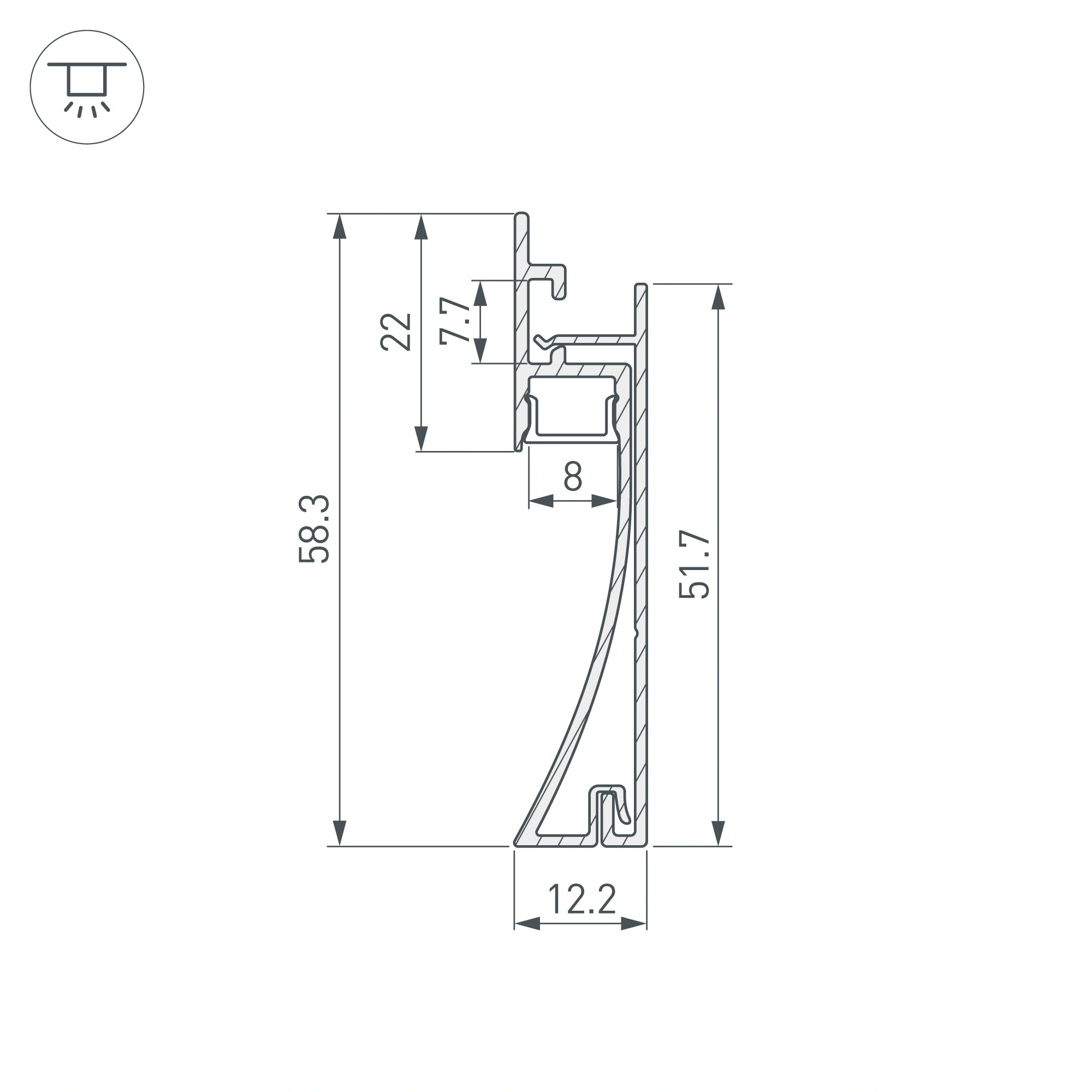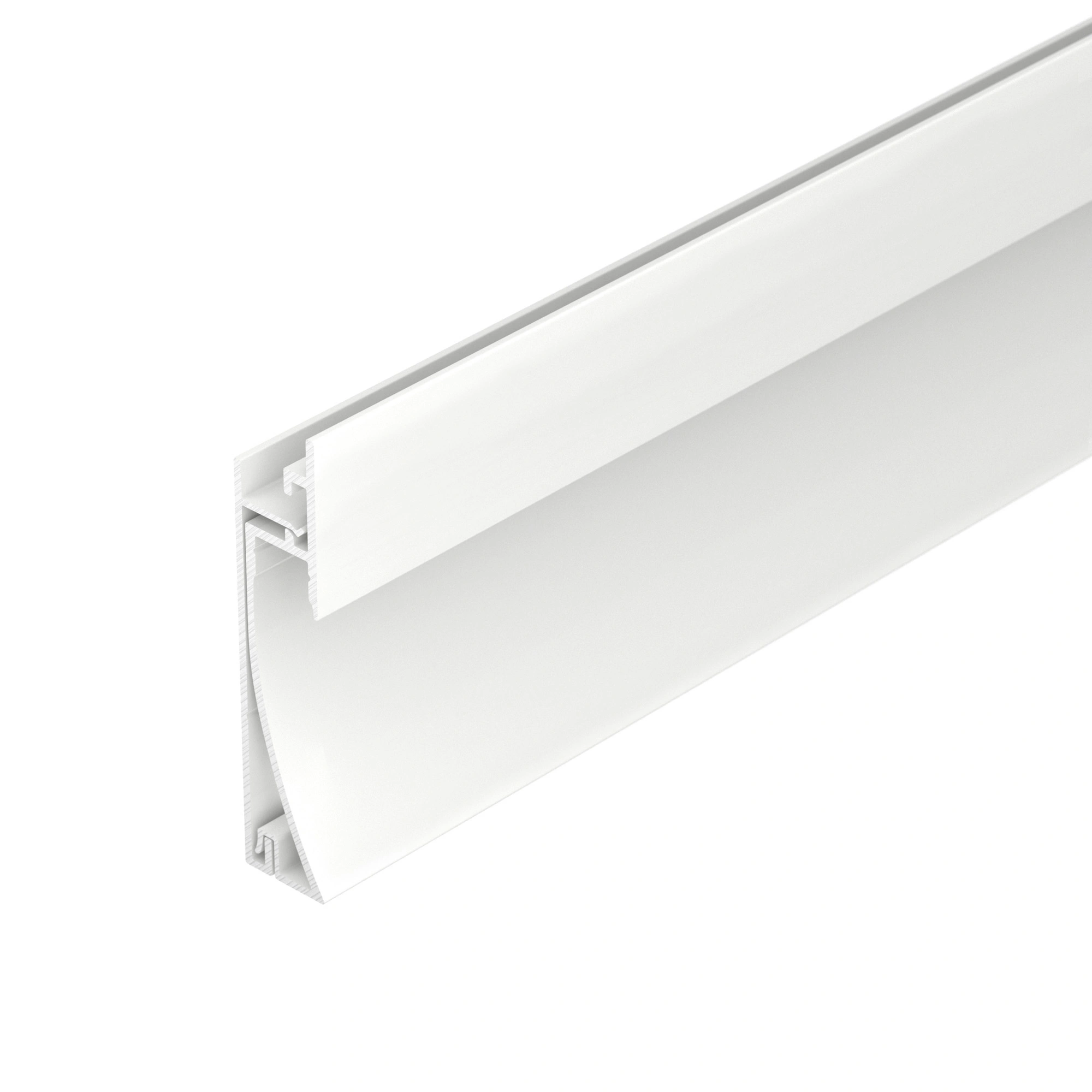 Встраиваемый двухкомпонентный алюминиевый профиль-плинтус с накладным фланцем белого цвета для создания эффекта парящей стены. Габаритные размеры этого профиля составляют 2000 мм в длину, 12,2 мм в ширину и 58,3 мм в высоту. Площадка для установки светодиодных лент позволяет использовать ленту шириной до 8 мм и мощностью до 20 Вт/м. Это обеспечивает гибкость в выборе светодиодных лент и создает потрясающие световые решения. Экран, заглушки и другие аксессуары не включены в комплект и приобретаются отдельно. Цена указана за 1 метр профиля. Отличное решение для создания современных световых проектов.