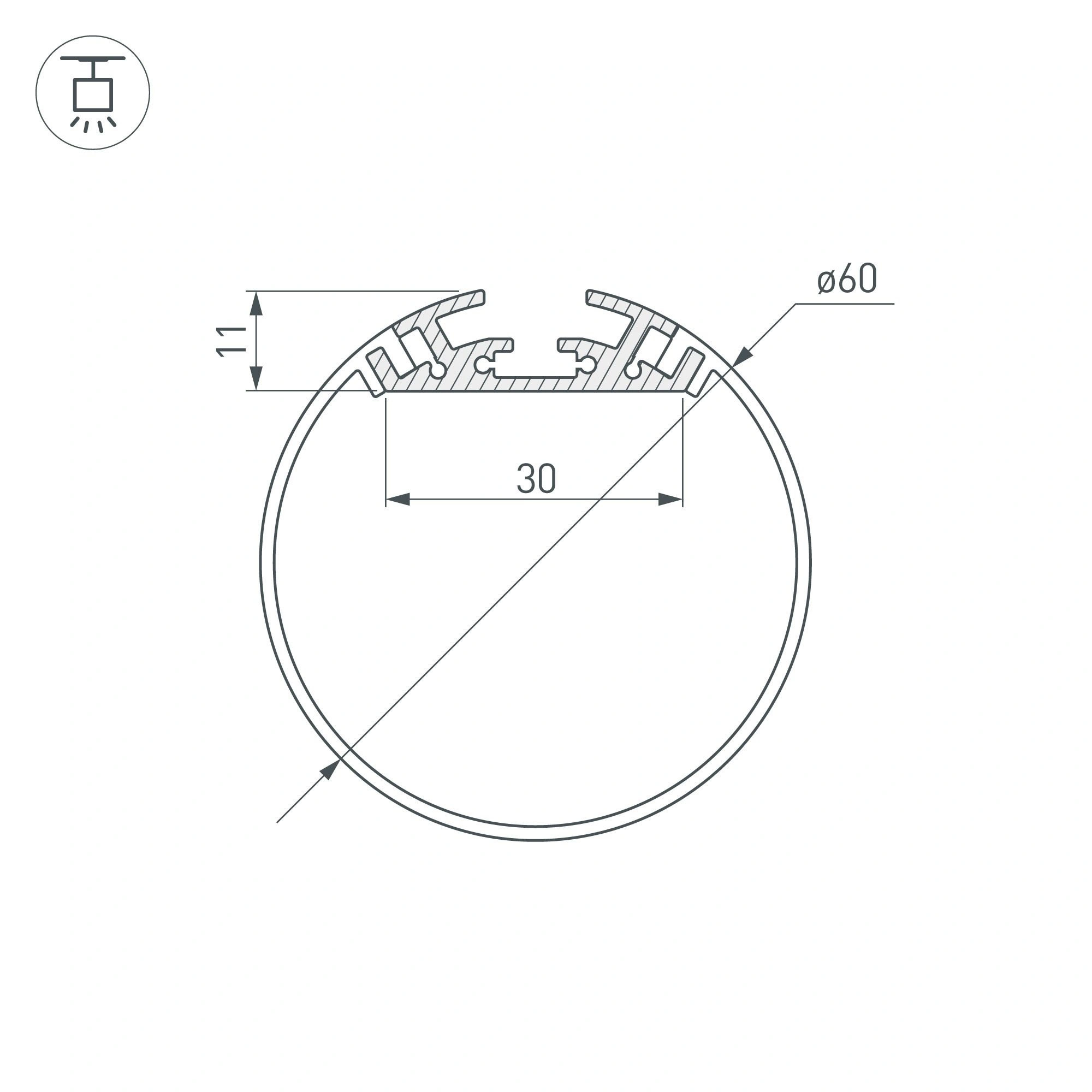 Подвесной профиль из анодированного алюминия для основного освещения. Габаритные размеры профиля с круглым рассеивателем составляют 2000 мм в длину, 60 мм в ширину и 60 мм в высоту. Площадка для установки светодиодных лент позволяет использовать ленту шириной до 30 мм и мощностью до 19 Вт/м. Это обеспечивает гибкость в выборе светодиодных лент и создает потрясающие световые решения. Экран, заглушки и другие аксессуары не включены в комплект и приобретаются отдельно. Цена указана за 1 метр профиля. Отличное решение для создания современных световых проектов.