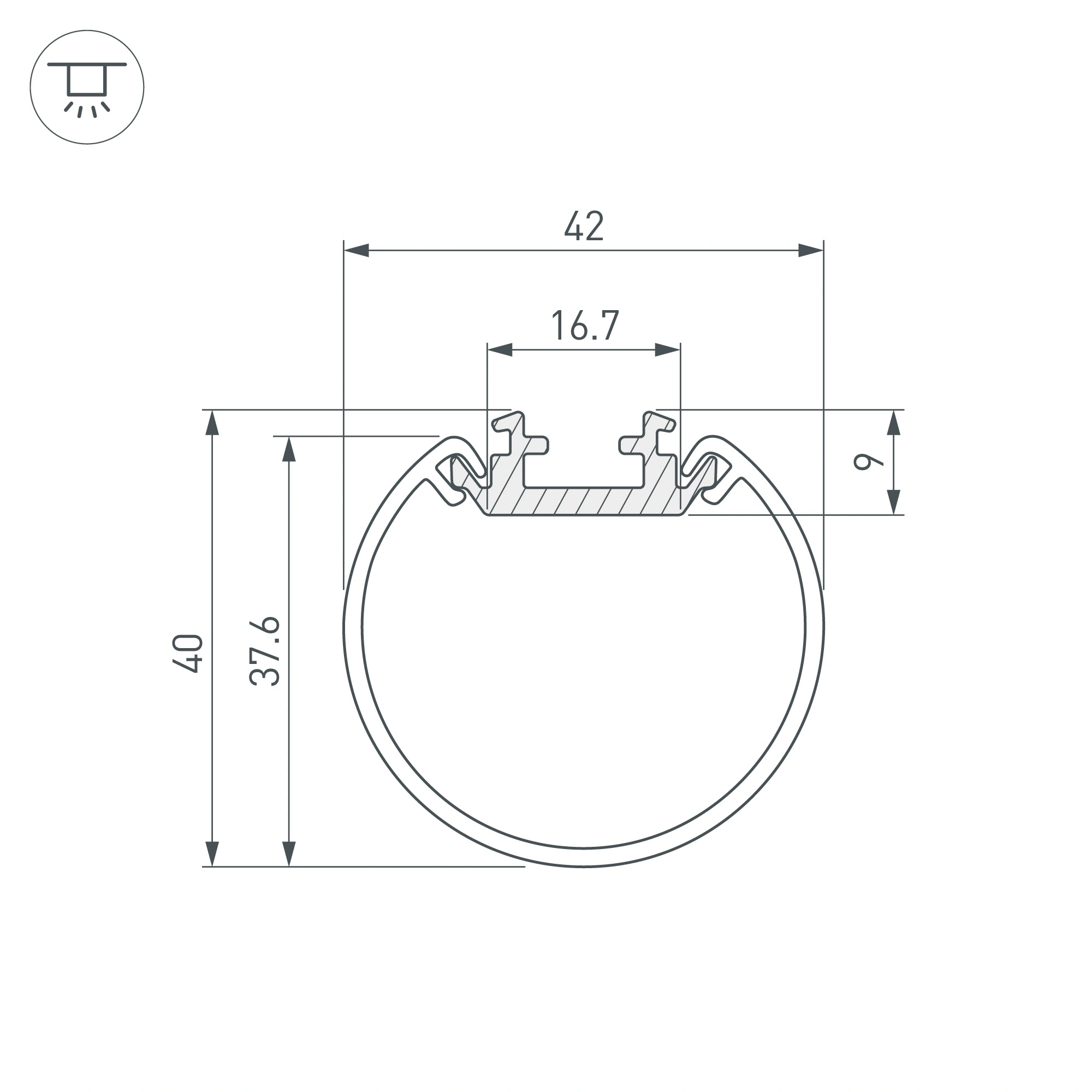 Подвесной профиль из анодированного алюминия для основного освещения. Габаритные размеры профиля с круглым рассеивателем составляют 2000 мм в длину, 40 мм в ширину и 40 мм в высоту. Площадка для установки светодиодных лент позволяет использовать ленту шириной до 16,7 мм и мощностью до 17 Вт/м. Это обеспечивает гибкость в выборе светодиодных лент и создает потрясающие световые решения. Экран, заглушки и другие аксессуары не включены в комплект и приобретаются отдельно. Цена указана за 1 метр профиля. Отличное решение для создания современных световых проектов.