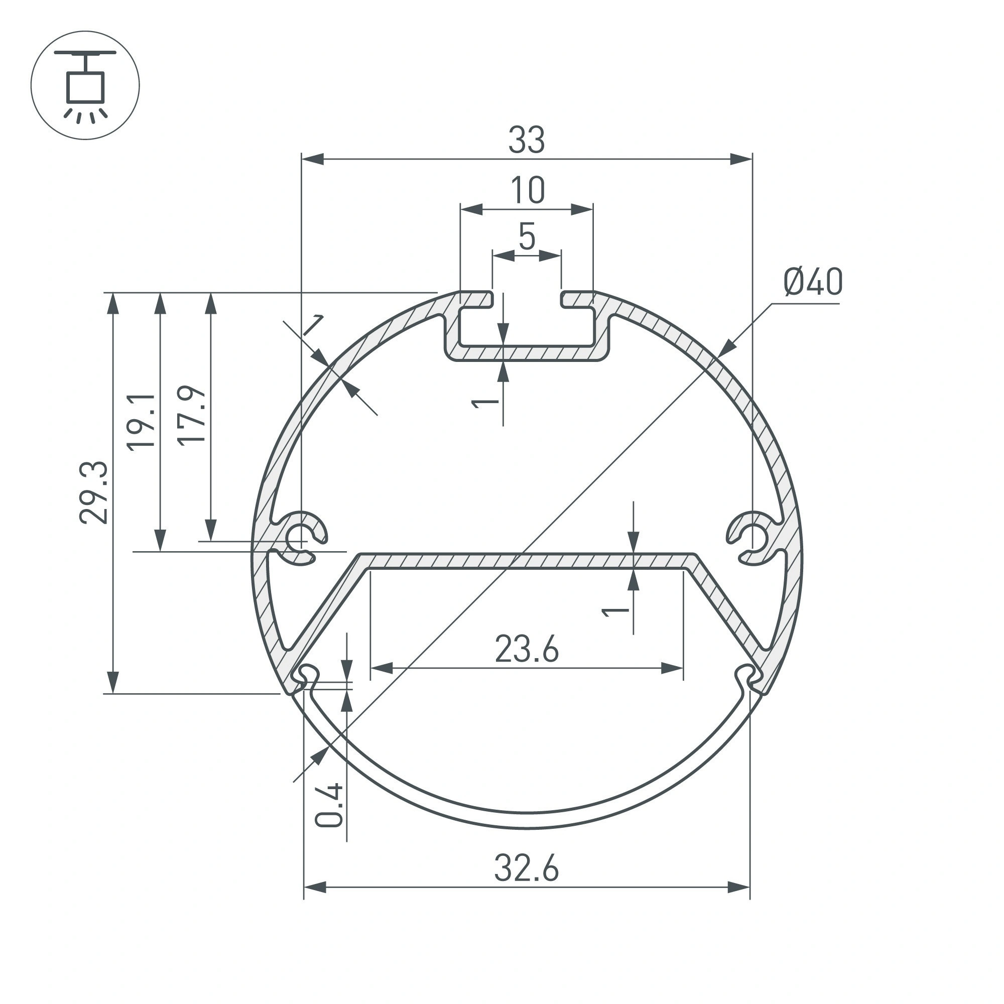 Комплект с экраном. Подвесной круглый профиль для линейных светильников, в комплекте с матовым экраном. Анодированный алюминий. Длина 2000мм. Цена за комплект 2,0м. Заглушки и подвесы отдельно. Поставляется без упаковки.