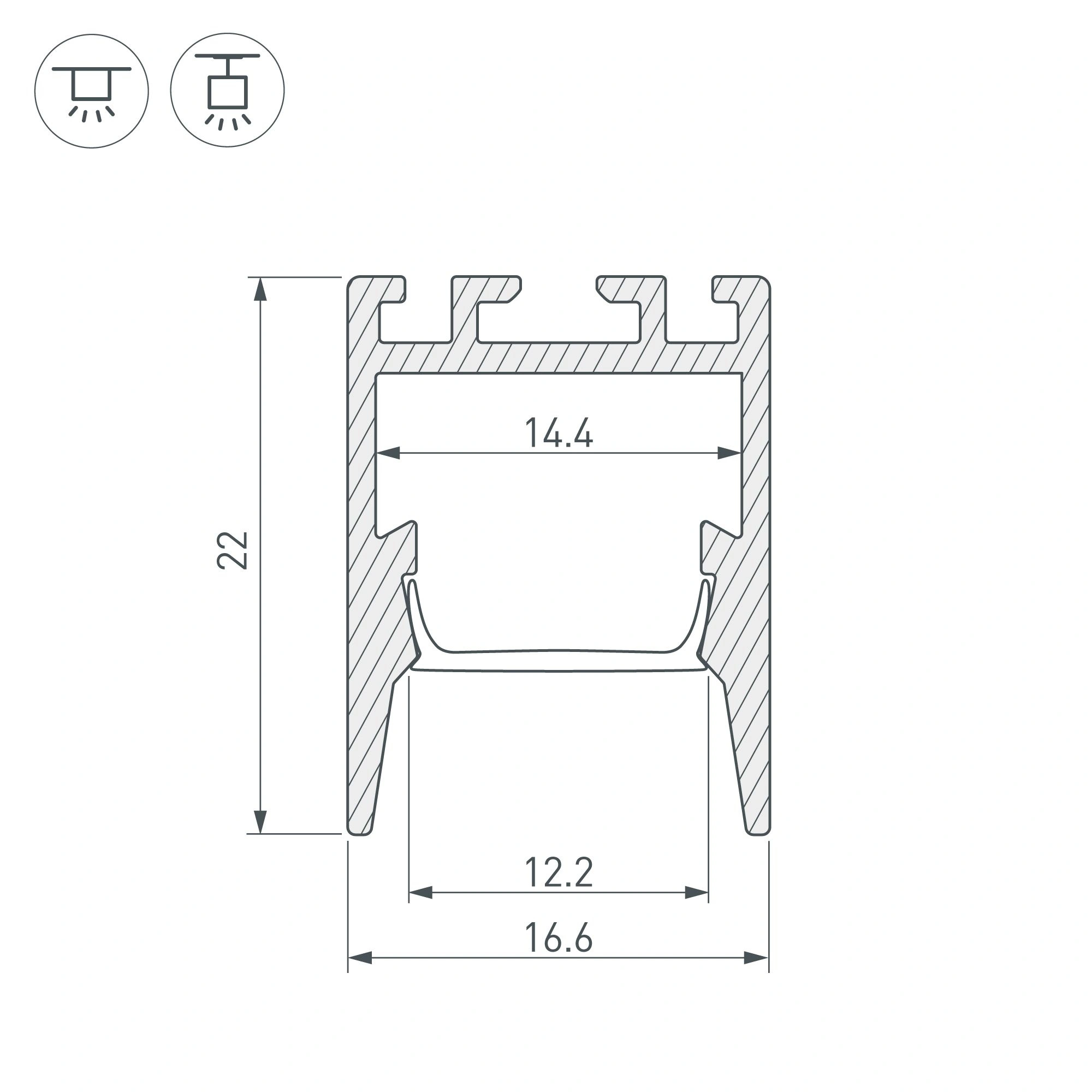Подвесной/накладной профиль черного цвета из анодированного алюминия для основного освещения и контурной подсветки интерьера. Экран утоплен в плоскости профиля, что позволяет скрыть источник света от прямого контакта с глазами. Габаритные размеры профиля составляют 2000 мм в длину, 16,6 мм в ширину и 22 мм в высоту. Площадка для установки светодиодных лент позволяет использовать ленту шириной до 14,4 мм и мощностью до 20 Вт/м. Это обеспечивает гибкость в выборе светодиодных лент и создает потрясающие световые решения. Экраны, заглушки и другие аксессуары не включены в комплект и приобретаются отдельно. Цена указана за 1 метр профиля. Отличное решение для создания современных световых проектов.