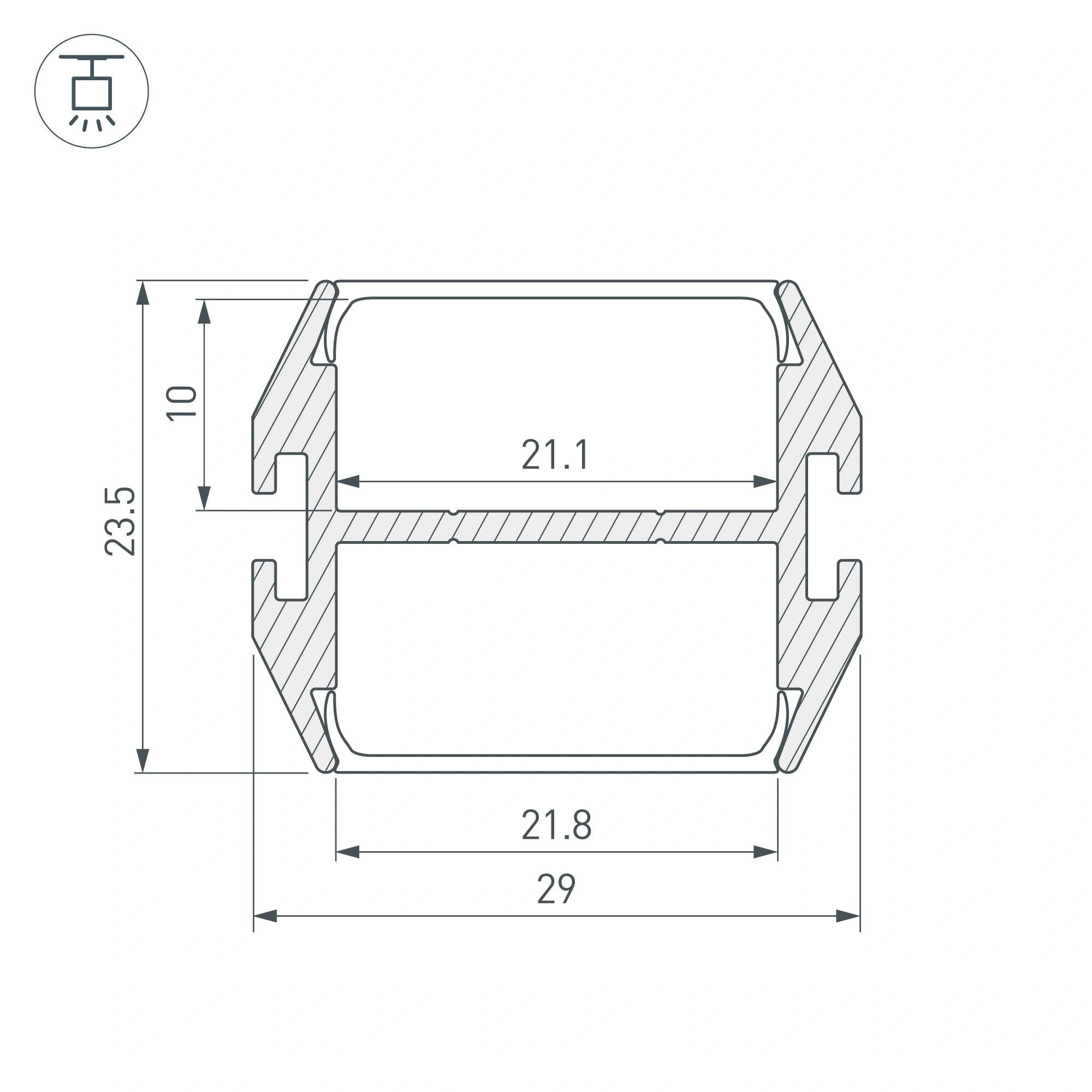 Алюминиевый анодированный подвесной профиль с двусторонним свечением (в стороны). Габаритные размеры (L×W×H): 2000x29x23,5 мм. Ширина площадки для ленты 21,1 мм. Для двух лент шириной до 20 мм. Экраны, заглушки и другие аксессуары приобретаются отдельно. Цена за 1 метр.