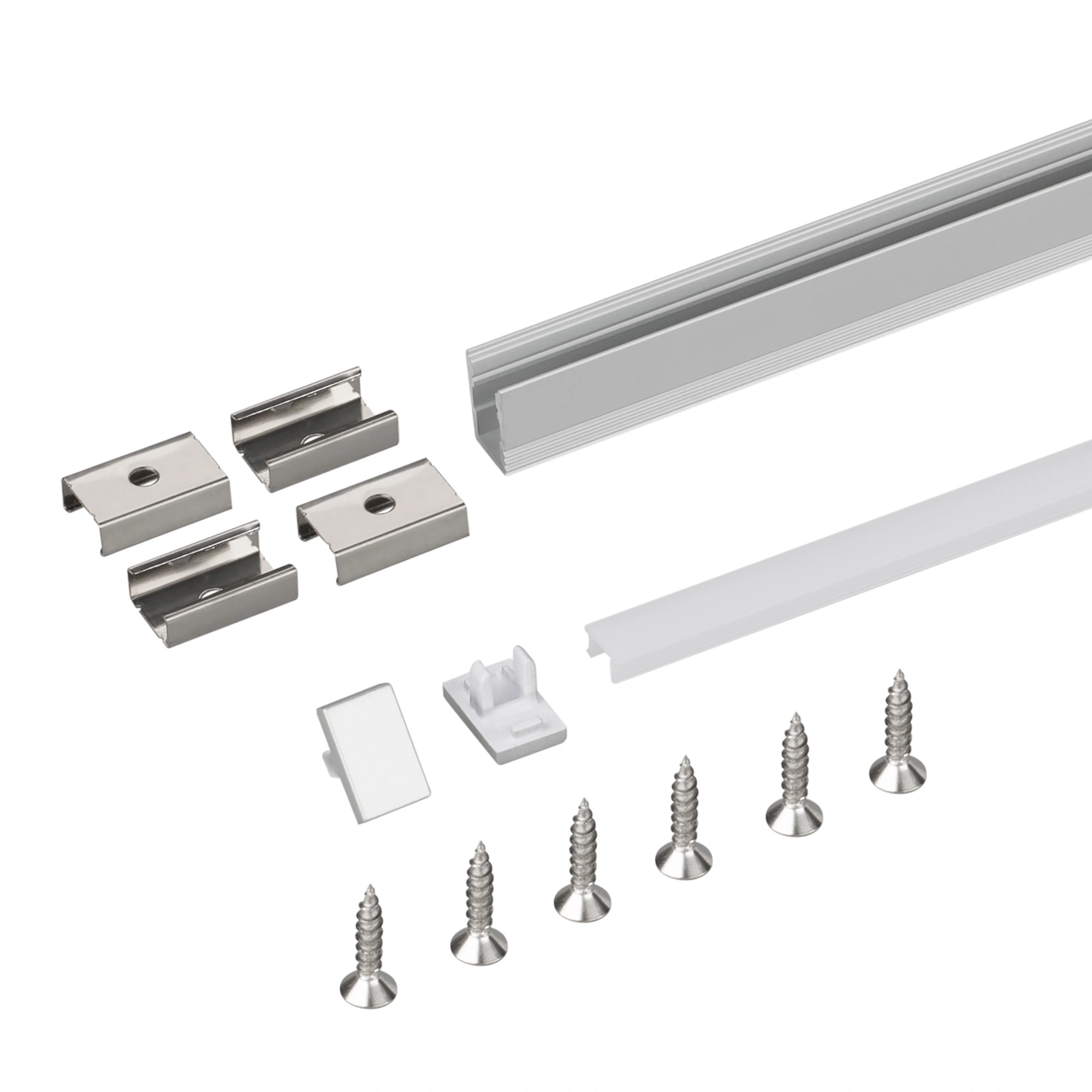 Накладной микро-профиль из анодированного алюминия в комплекте с матовым экраном со светопропусканием 61%, заглушками и держателями для подсветки мебели, пазов, ниш и других элементов интерьера. Габаритные размеры профиля составляют 2000 мм в длину, 8 мм в ширину и 12 мм в высоту. Площадка для установки светодиодных лент позволяет использовать ленту шириной до 5 мм и мощностью до 11 Вт/м. Это обеспечивает гибкость в выборе светодиодных лент и создает потрясающие световые решения. Цена указана за комплект. Отличное решение для создания современных световых проектов.