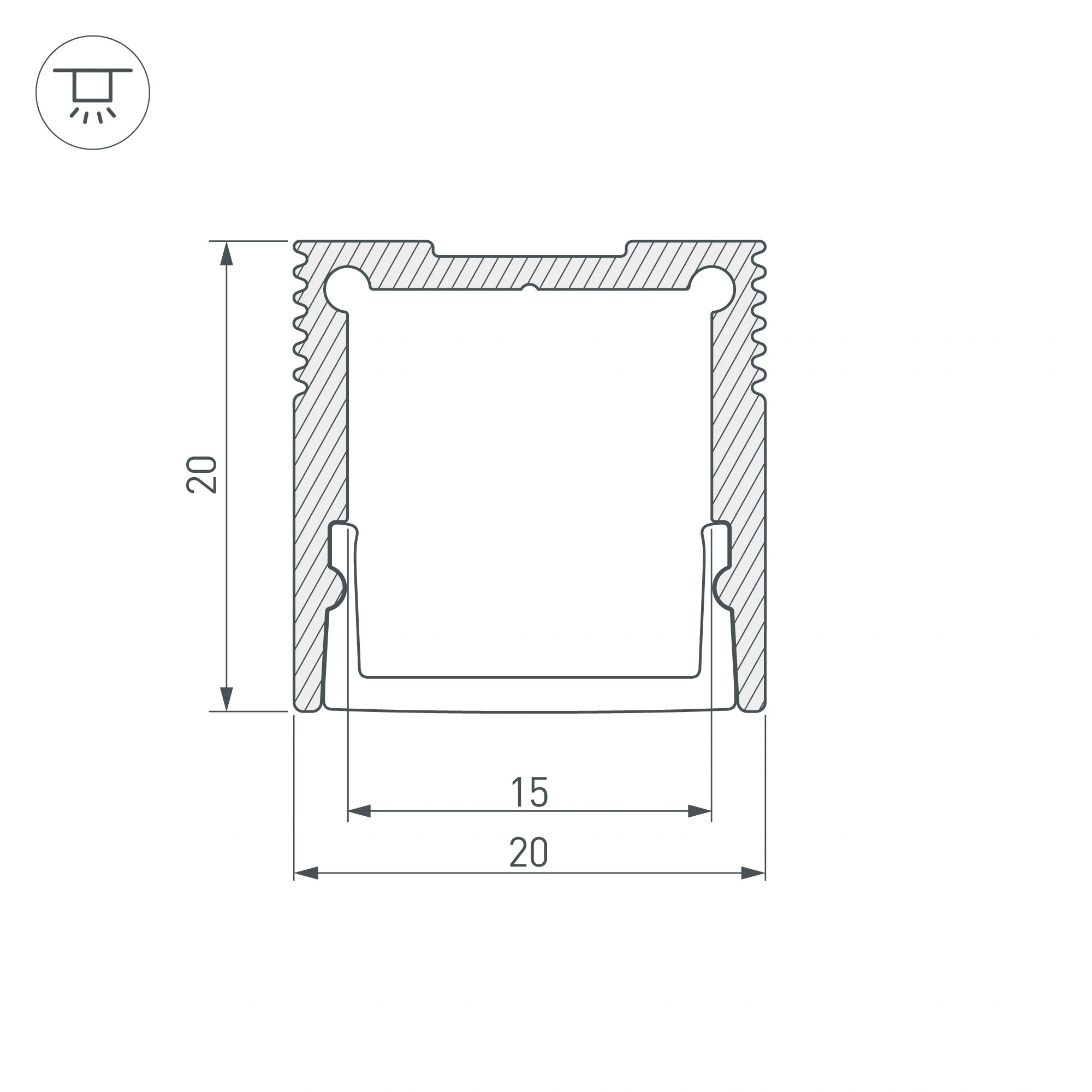 Алюминиевый профиль для светодиодных лент и линеек. Цвет - чёрный RAL9005 (порошковая окраска). Габаритные размеры (L×W×H): 2000x20x20 мм. Ширина площадки для ленты 15 мм. Экраны, заглушки и другие аксессуары приобретаются отдельно. Цена за 1 метр.