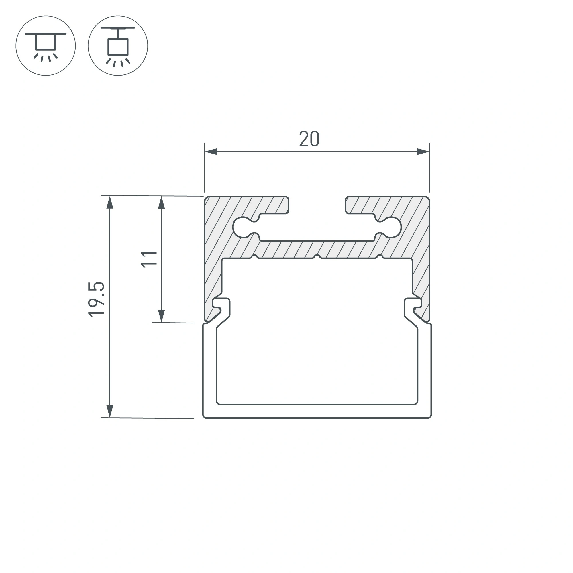 Комплект с экраном и заглушками (2 шт.). Алюминиевый профиль для светодиодных лент и линеек. Цвет - чёрный RAL9005 (порошковая окраска). Габаритные размеры профиля (L×W×H): 2500x20x11 мм. Габаритные размеры профиля с экраном (L×W×H): 2500x20x20 мм. Ширина площадки для ленты 16,5 мм. Аксессуары приобретаются отдельно. Цена за комплект.