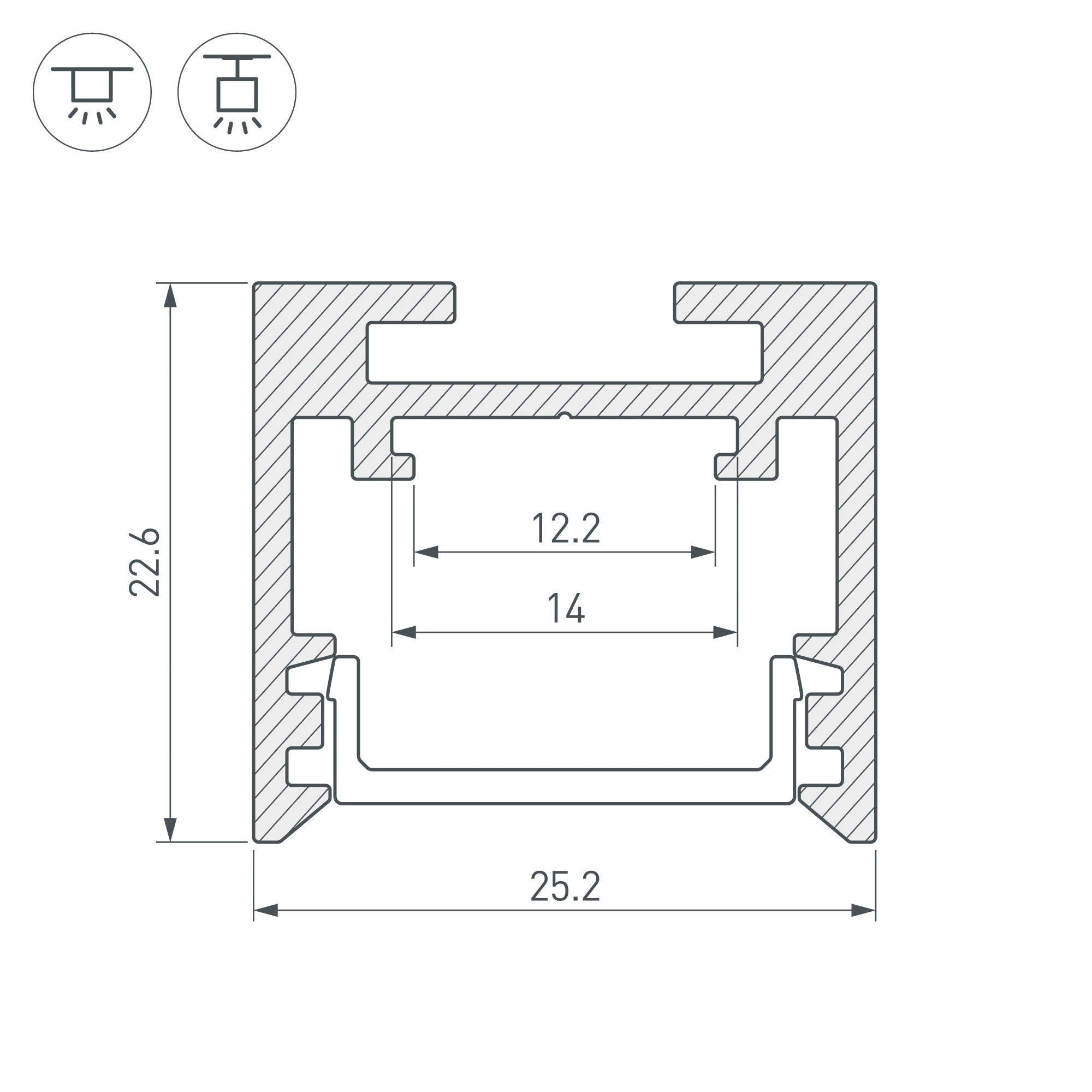 Подвесной/накладной профиль белого цвета из алюминия для основного освещения и контурной подсветки. Габаритные размеры профиля составляют 2500 мм в длину, 25 мм в ширину и 22 мм в высоту. Площадки для установки светодиодных лент позволяют использовать ленты шириной до 12 мм и мощностью до 25 Вт/м. Это обеспечивает гибкость в выборе светодиодных лент и создает потрясающие световые решения. Экраны, заглушки и другие аксессуары не включены в комплект и приобретаются отдельно. Цена указана за 1 метр профиля. Отличное решение для создания современных световых проектов.