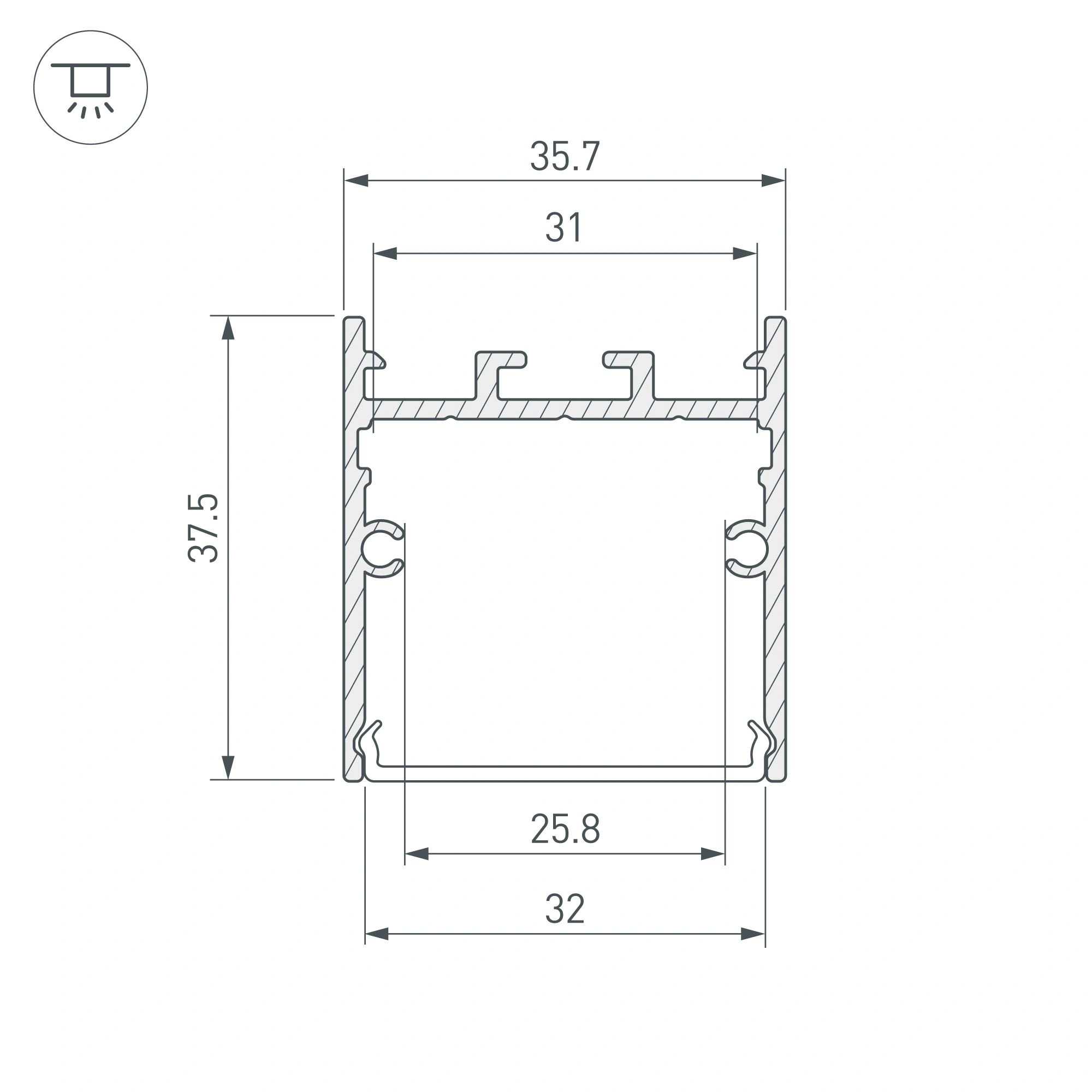 Алюминиевый анодированный профиль для светодиодных лент и линеек. Цвет - черный. Габаритные размеры (L×W×H): 2000x36x38 мм. Ширина площадки для ленты 31 мм. Экраны, заглушки и другие аксессуары приобретаются отдельно. Цена за 1 метр.