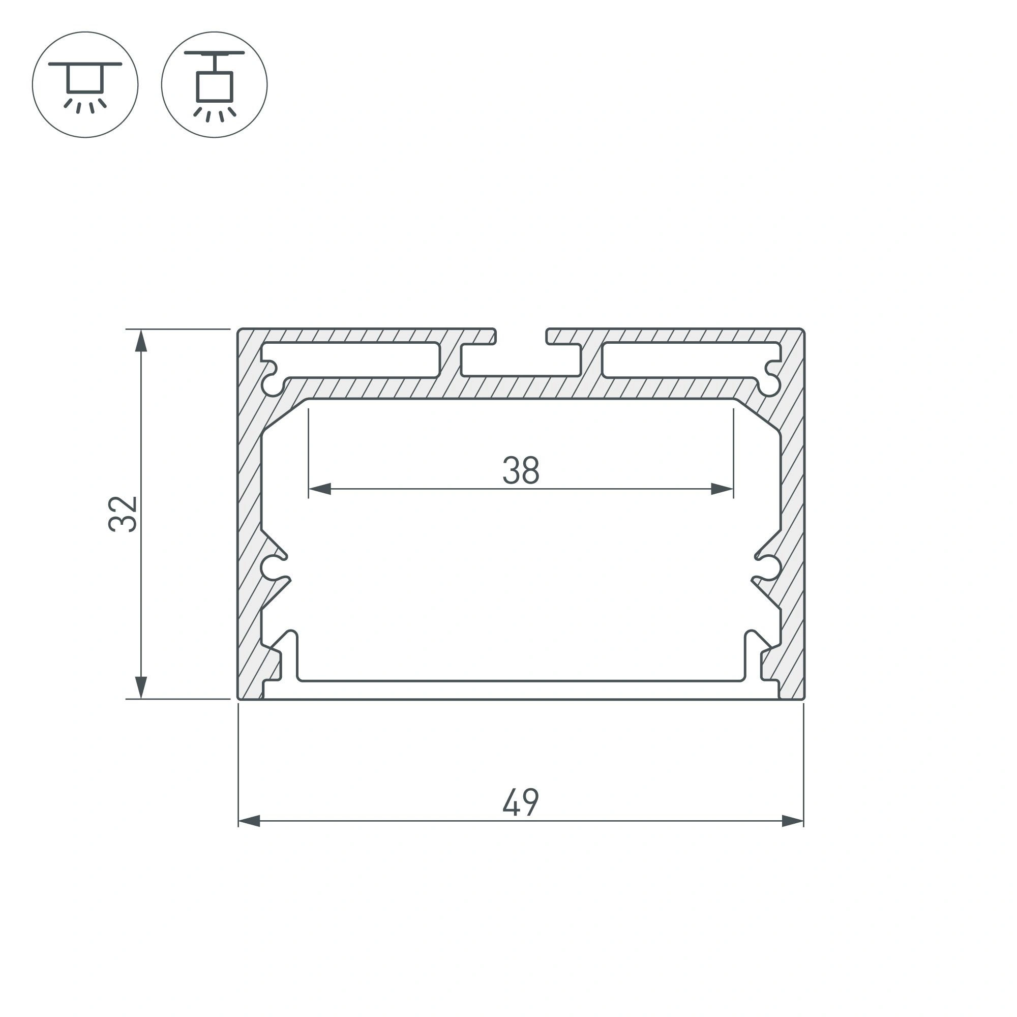 Подвесной/накладной профиль черного цвета из алюминия в комплекте с матовым рассеивателем из поликарбоната со светопропусканием 67% и заглушками идеально подходит для основного освещения и контурной подсветки. Габаритные размеры профиля составляют 2500 мм в длину, 49 мм в ширину и 32 мм в высоту. Площадка для установки светодиодных лент позволяет использовать ленту шириной до 38 мм и мощностью до 42,5 Вт/м. Это обеспечивает гибкость в выборе светодиодных лент и создает потрясающие световые решения. Прочие аксессуары не включены в комплект и приобретаются отдельно. Цена указана за комплект. Отличное решение для создания современных световых проектов.