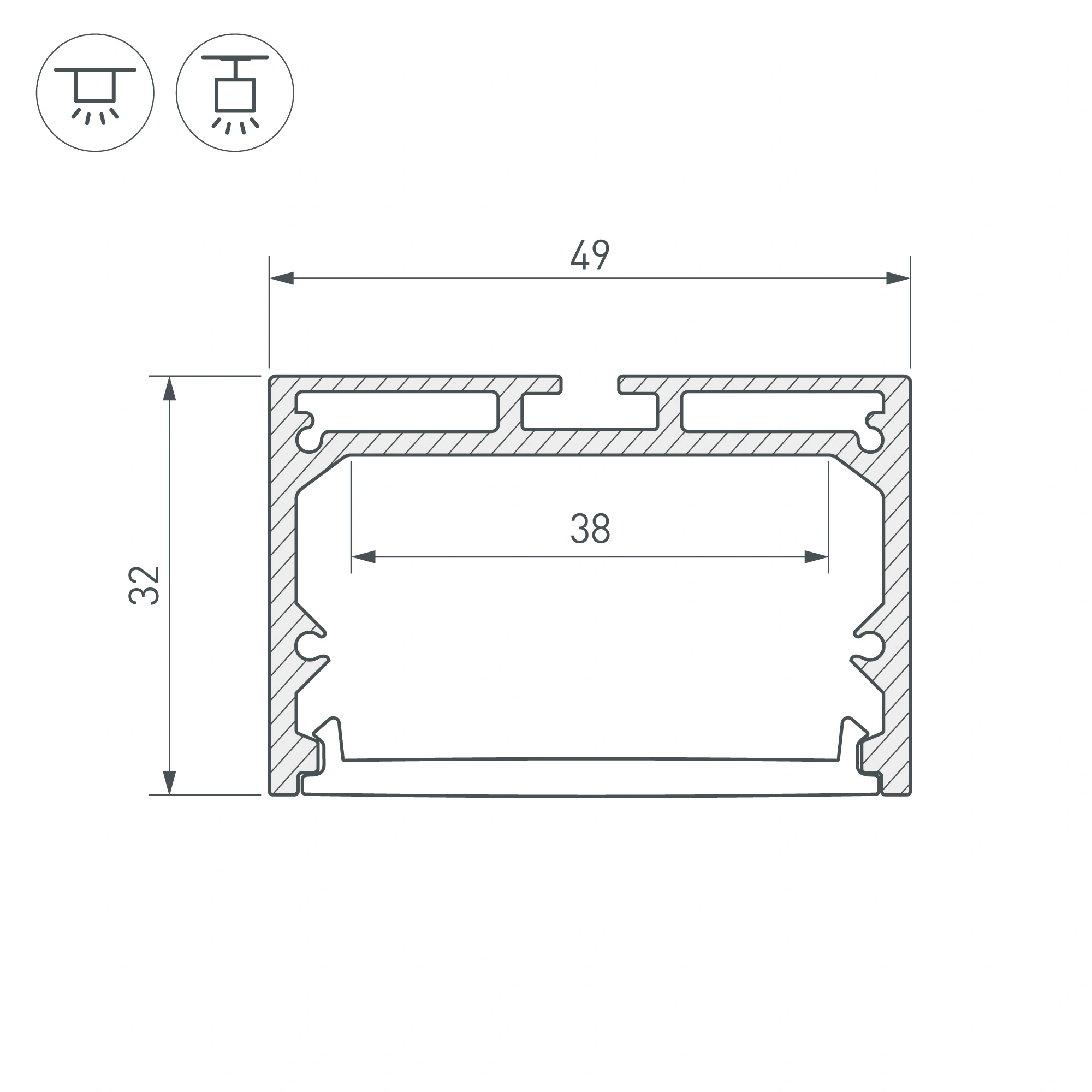 Подвесной/накладной профиль белого цвета из алюминия в комплекте с матовым рассеивателем из поликарбоната со светопропусканием 67% и заглушками идеально подходит для основного освещения и контурной подсветки. Габаритные размеры профиля составляют 2500 мм в длину, 49 мм в ширину и 32 мм в высоту. Площадка для установки светодиодных лент позволяет использовать ленту шириной до 38 мм и мощностью до 42,5 Вт/м. Это обеспечивает гибкость в выборе светодиодных лент и создает потрясающие световые решения. Прочие аксессуары не включены в комплект и приобретаются отдельно. Цена указана за комплект. Отличное решение для создания современных световых проектов.
