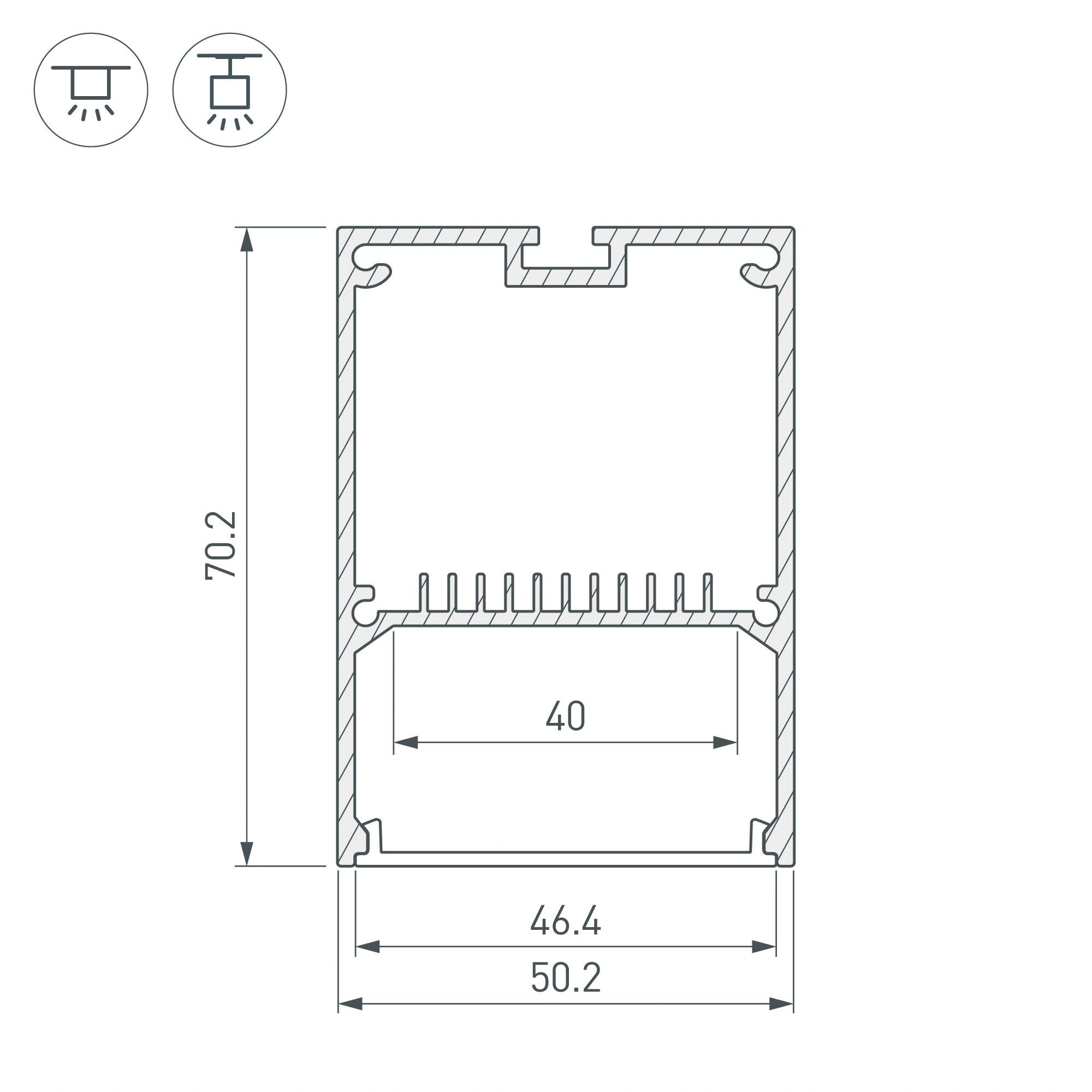 Накладной/подвесной профиль из анодированного алюминия с отсеком для блока питания (44х31 мм) для основного освещения и контурной подсветки. Габаритные размеры профиля составляют 2000 мм в длину, 50,2 мм в ширину и 70,2 мм в высоту. Площадка для установки светодиодных лент позволяет использовать ленту шириной до 40 мм и мощностью до 76 Вт/м. Это обеспечивает гибкость в выборе светодиодных лент и создает потрясающие световые решения. Экраны, заглушки и другие аксессуары не включены в комплект и приобретаются отдельно. Цена указана за 1 метр профиля. Отличное решение для создания современных световых проектов.