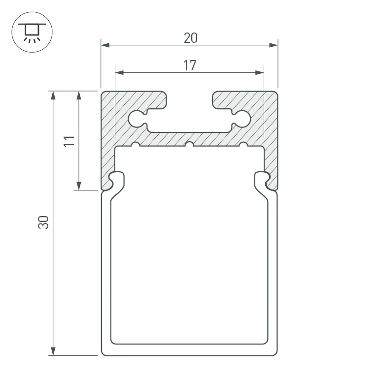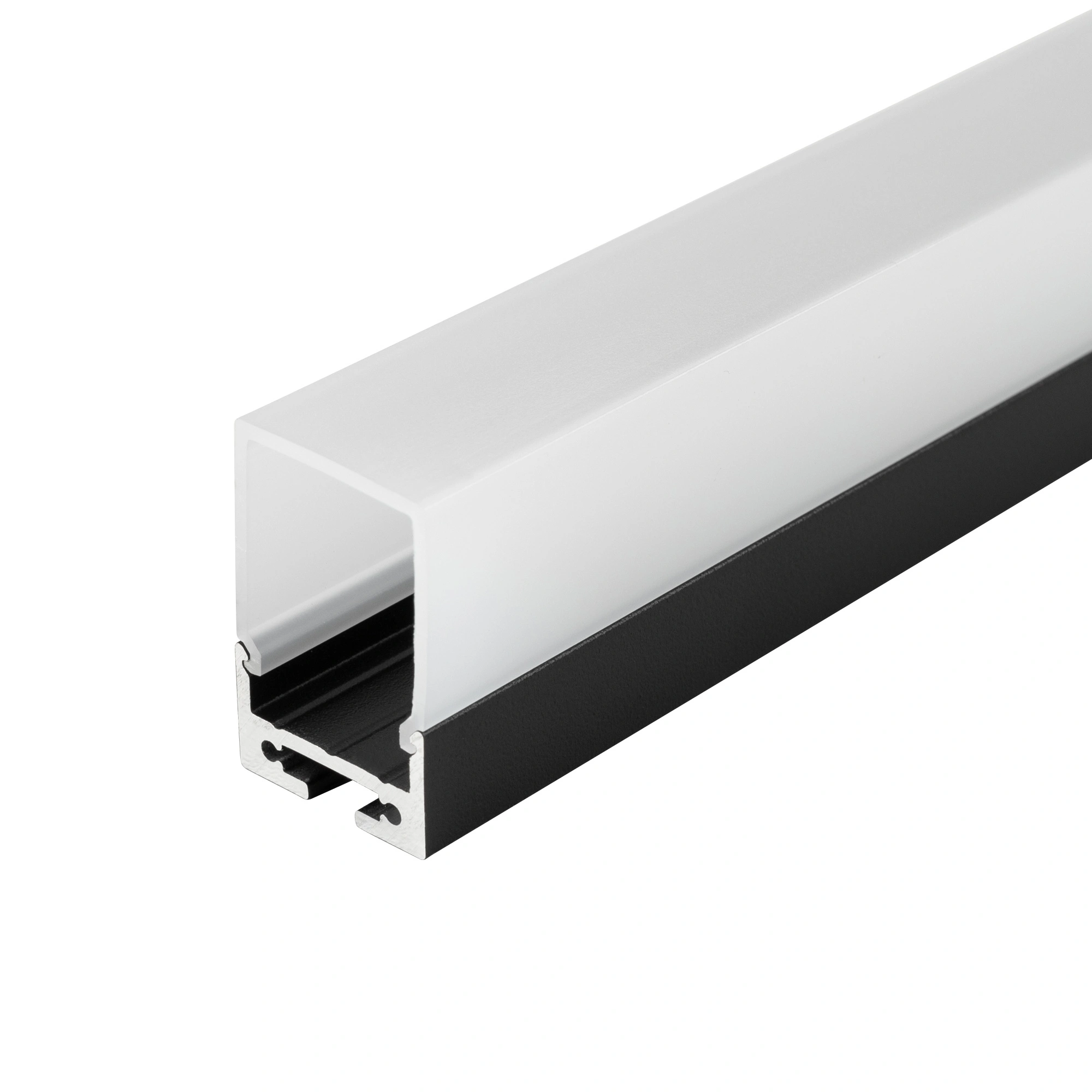 Комплект с квадратным экраном и заглушками. Подвесной/накладной профиль 20х30мм (с экраном) для линейных светильников. Цвет - чёрный. Длина 2500мм. Цена за комплект 2,5м. Заглушки в комплекте (1 компл.). Держатели и подвесы отдельно.