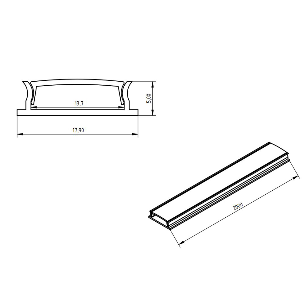 Алюминиевый анодированный профиль гибкий. Для лент шириной до 13мм. Размеры 2000х17.9x5мм. В комплекте с матовым рассеивателем. Вес 145г.