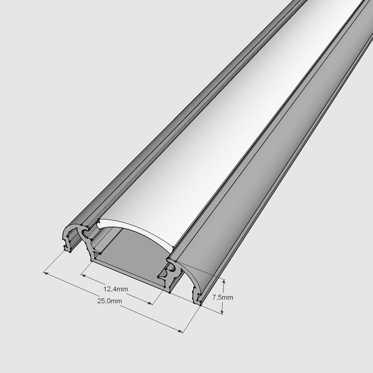 Цена указана за комплект. Алюминиевый анодированный профиль. Для лент шириной до 12мм. Размеры 2500х7,5х25мм. Вес 350г. В комплекте с матовым рассеивателем. Нашел широкое применение в изготовлении подсветки рабочей зоны кухни.