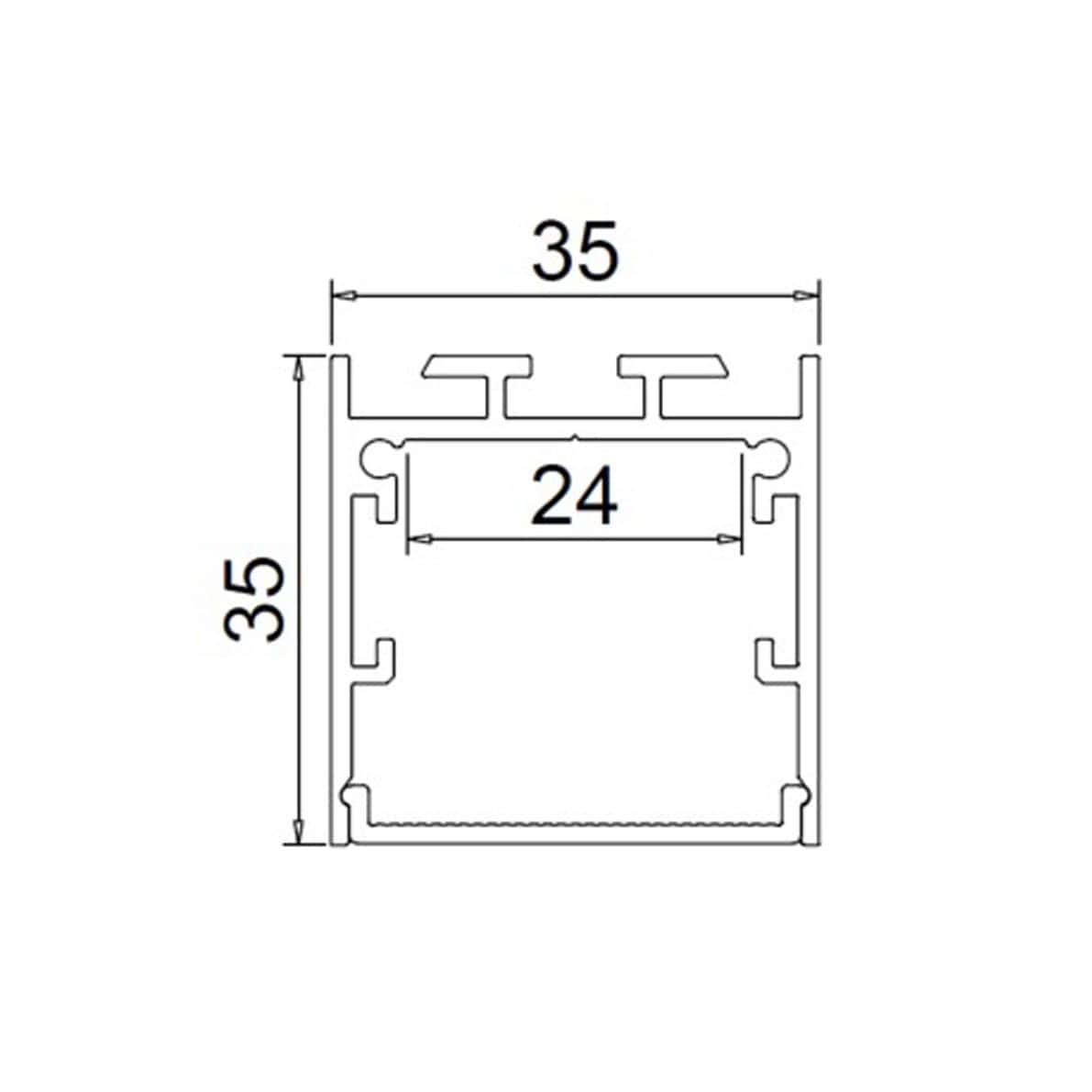 Цена указана за комплект. Алюминиевый анодированный профиль . Для лент шириной до 24мм. Размеры 2500х35х35мм. Вес 1570г. В комплекте с матовым рассеивателем.