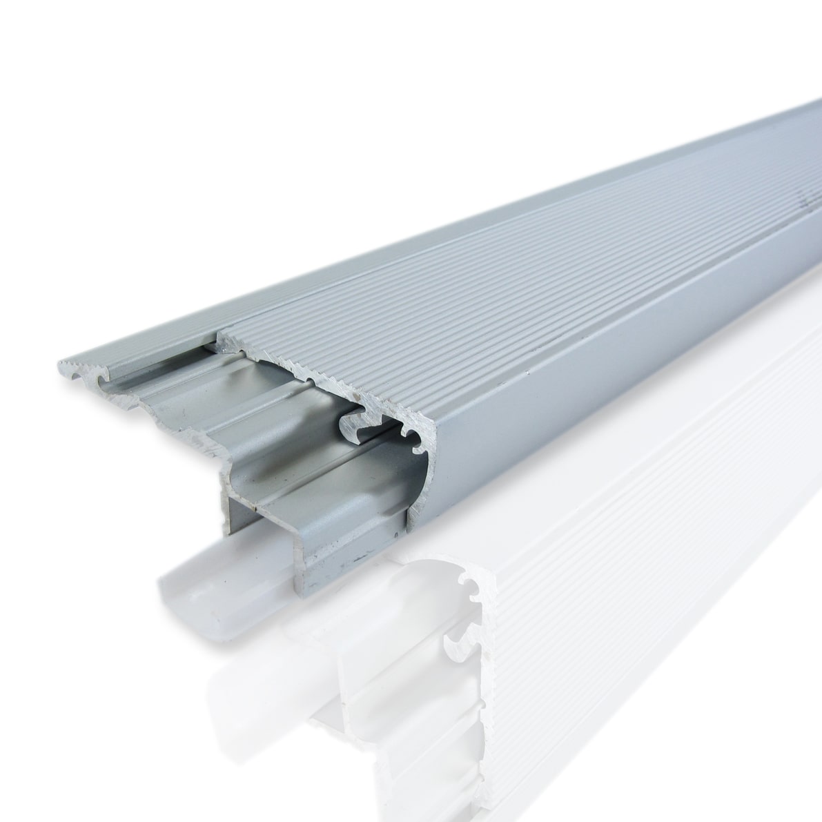 Цена указана за комплект. Алюминиевый профиль для ступеней. Анодированный. Для лент шириной до 12мм. Размеры 2000х59,2х23,7мм. В комплекте с матовым рассеивателем.