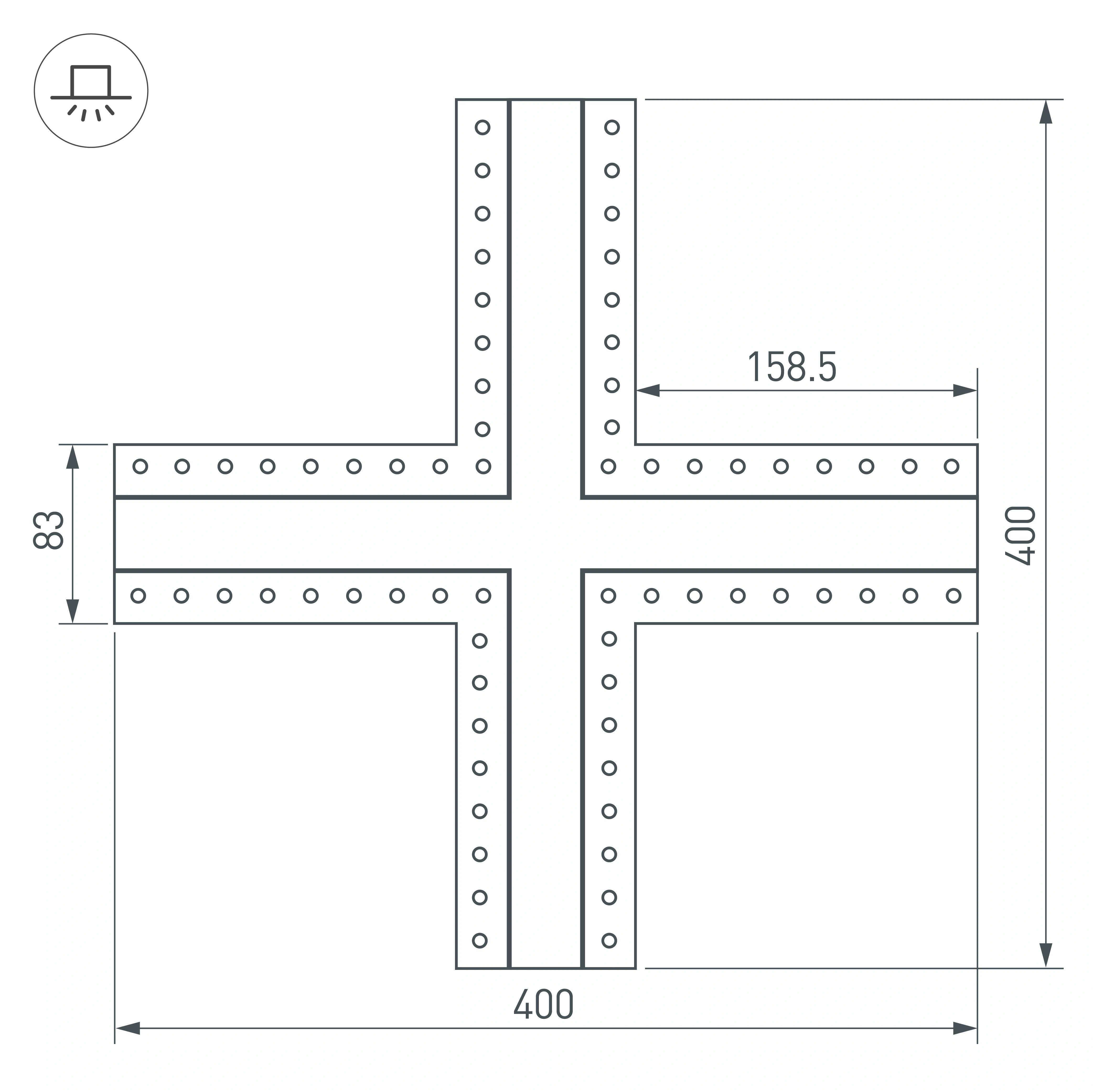 Крестовой угол в сборе для соединения четырех профилей SL-LINIA32-FANTOM под прямыми углами 90° в одной плоскости в комплекте с матовым экраном, соединителями и винтами. Экран образует Х-образную фигуру на плоскости. Применятся при изготовлении светильников сложной геометрии. Длина крестовины 400 мм. Цена за комплект.