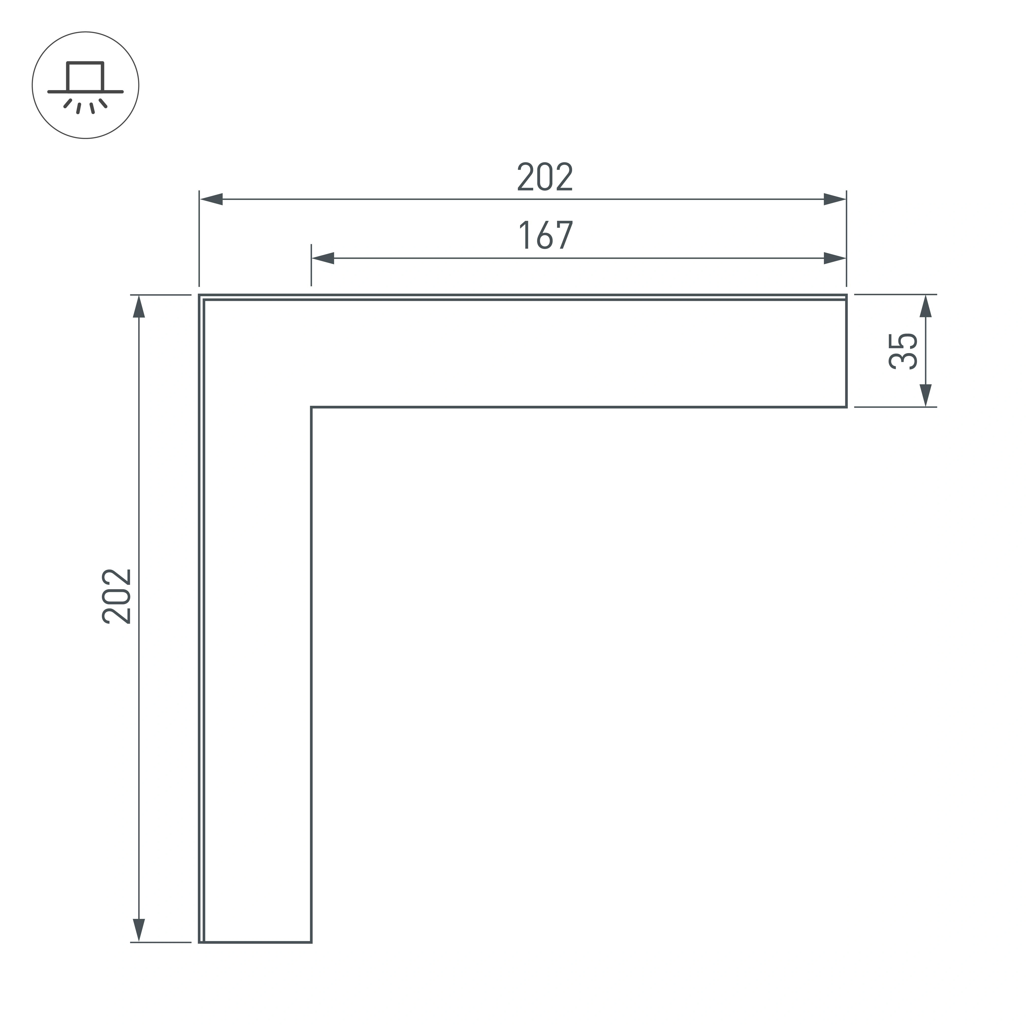Внешний прямой угол в сборе с накладным фланцем для соединения двух профилей SL-LINIA65-F под прямым углом 90° в разных плоскостях в комплекте с матовым экраном и соединителями. Экран образует линию по внешней стороне угла. Применятся при изготовлении светильников сложной геометрии. Длина внешней стороны угла 202мм. Цена за комплект.