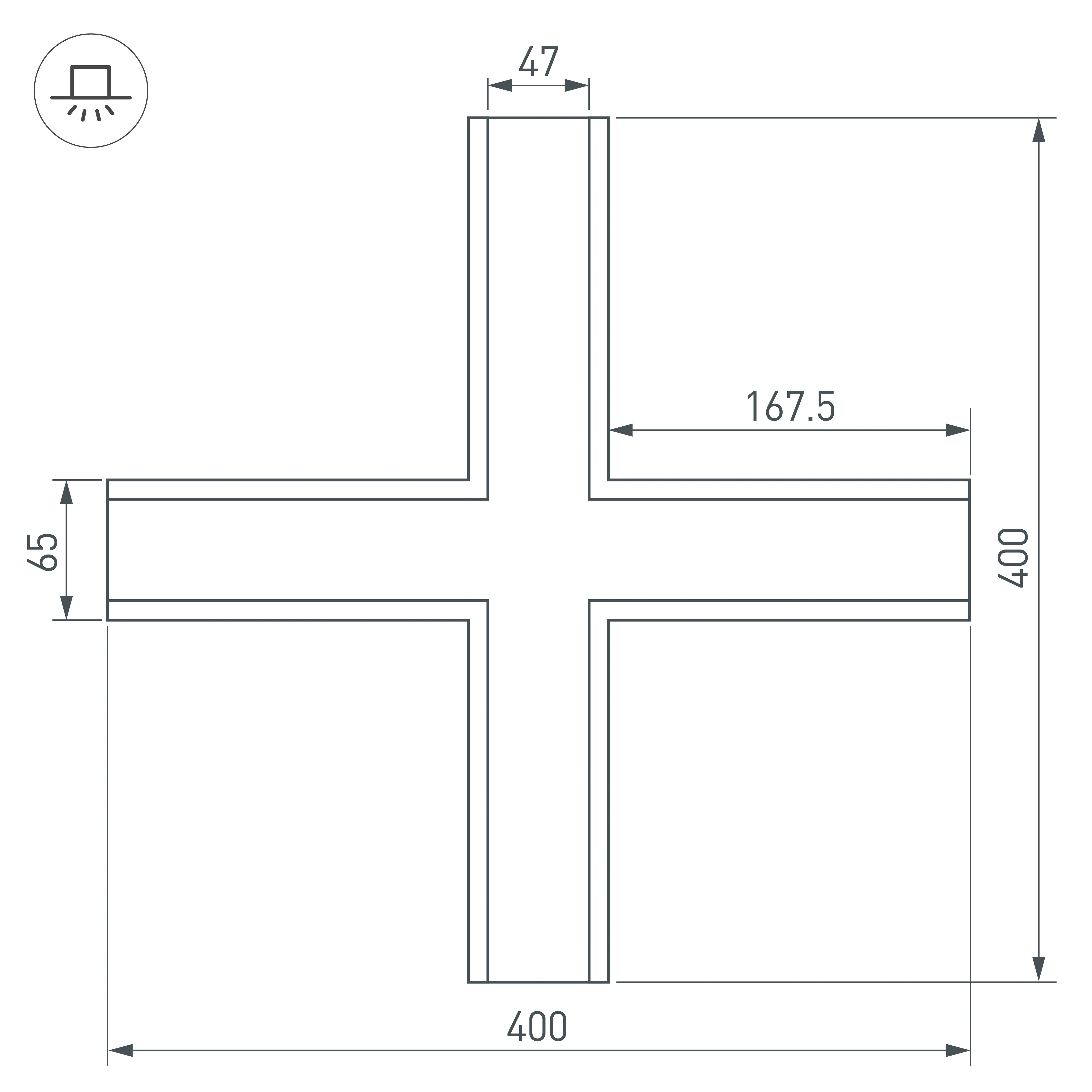 Крестовой угол в сборе для соединения четырех профилей SL-LINIA65-F под прямыми углами 90° в одной плоскости в комплекте с матовым экраном, соединителями и винтами. Экран образует Х-образную фигуру на плоскости. Применятся при изготовлении светильников сложной геометрии. Длина крестовины 400 мм. Цена за комплект.