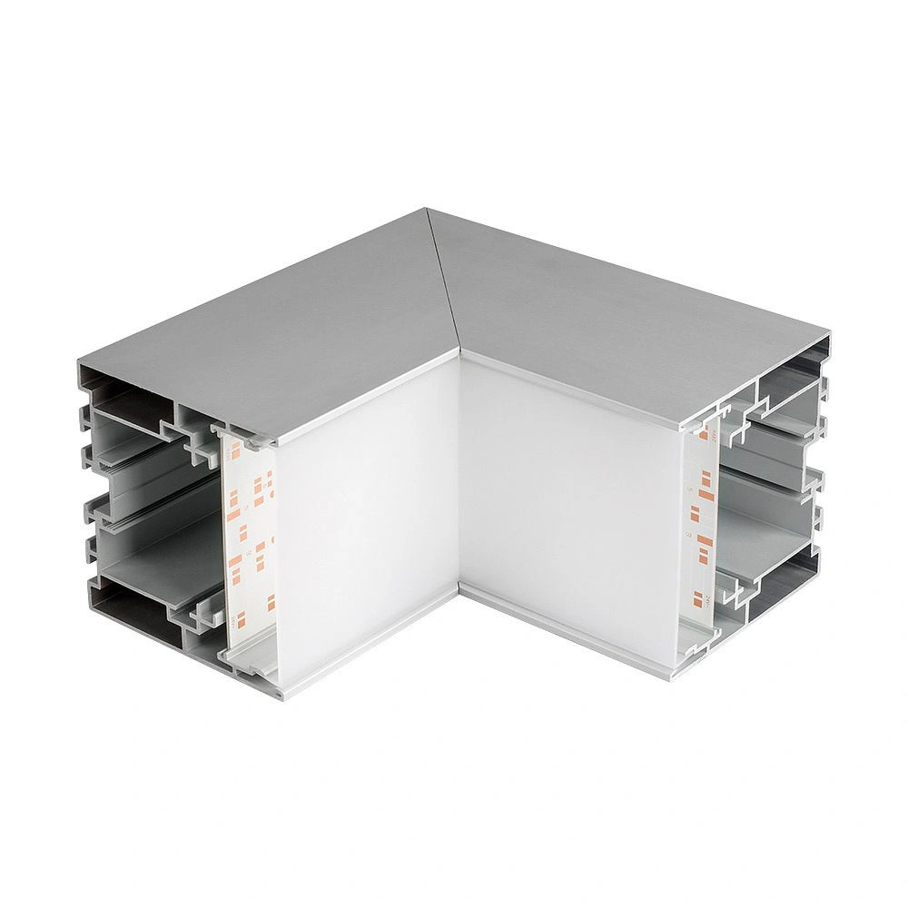 Внутренний угол в сборе, для соединения 2-х профилей S2-LINE-7977 под углом 90°. Экран образует линию внутри угла. В комплекте матовый экран, площадка для ленты, соединители. Длина внешней стороны угла 150 мм.