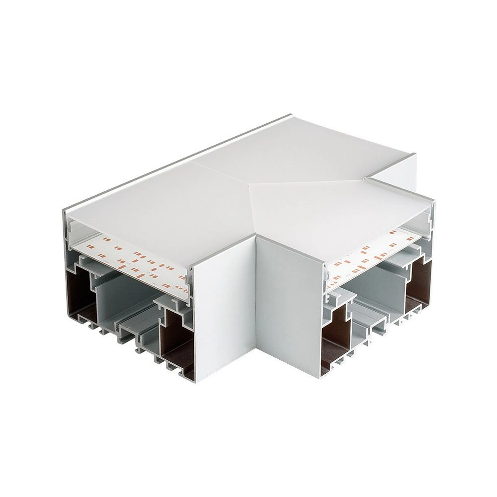 Т-образный угол в сборе для соединения трех профилей S2-LINE-10570 под прямыми углами 90° в одной плоскости в комплекте с матовым экраном, площадкой для ленты и соединителями. Экран образует Т-образную фигуру на плоскости. Применятся при изготовлении светильников сложной геометрии. Длина внешней стороны угла 200мм. Цена за комплект.