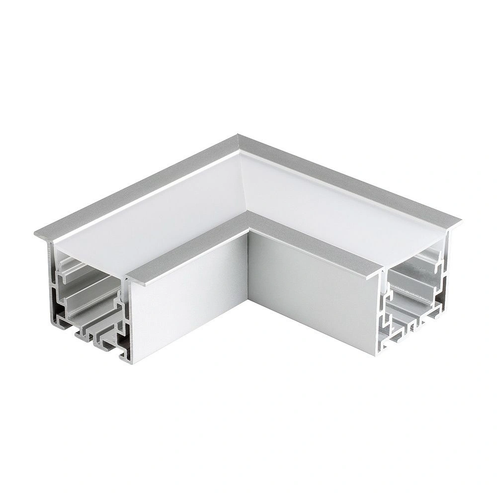 Прямой угол в сборе для соединения 2-х профилей S2-LINIA55-F под прямым углом 90°. Экран образует линию на плоскости. В комплекте матовый экран, соединители. Длина внешней стороны угла 100мм.