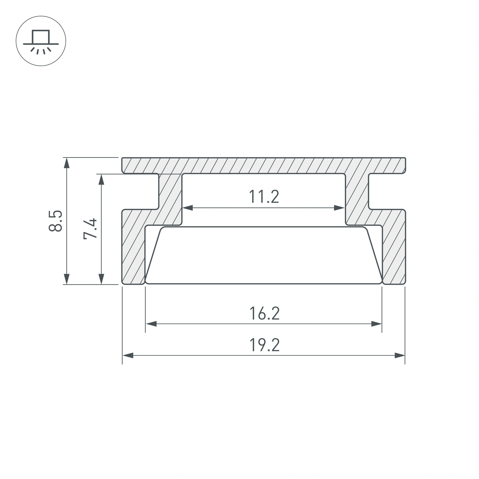 Алюминиевый анодированный профиль, встраиваемый в пол. Высокопрочный алюминий. Герметизация до IP67. Может использоваться как внутри помещений, так и снаружи (для пешеходных дорожек). Габаритные размеры (L×W×H): 3000x19,2x8,5 мм. Ширина площадки для ленты 11,2 мм. Экран (из сверхпрочного поликарбоната, УФ-устойчивый), заглушки и другие аксессуары приобретаются отдельно. Цена за 1 метр.