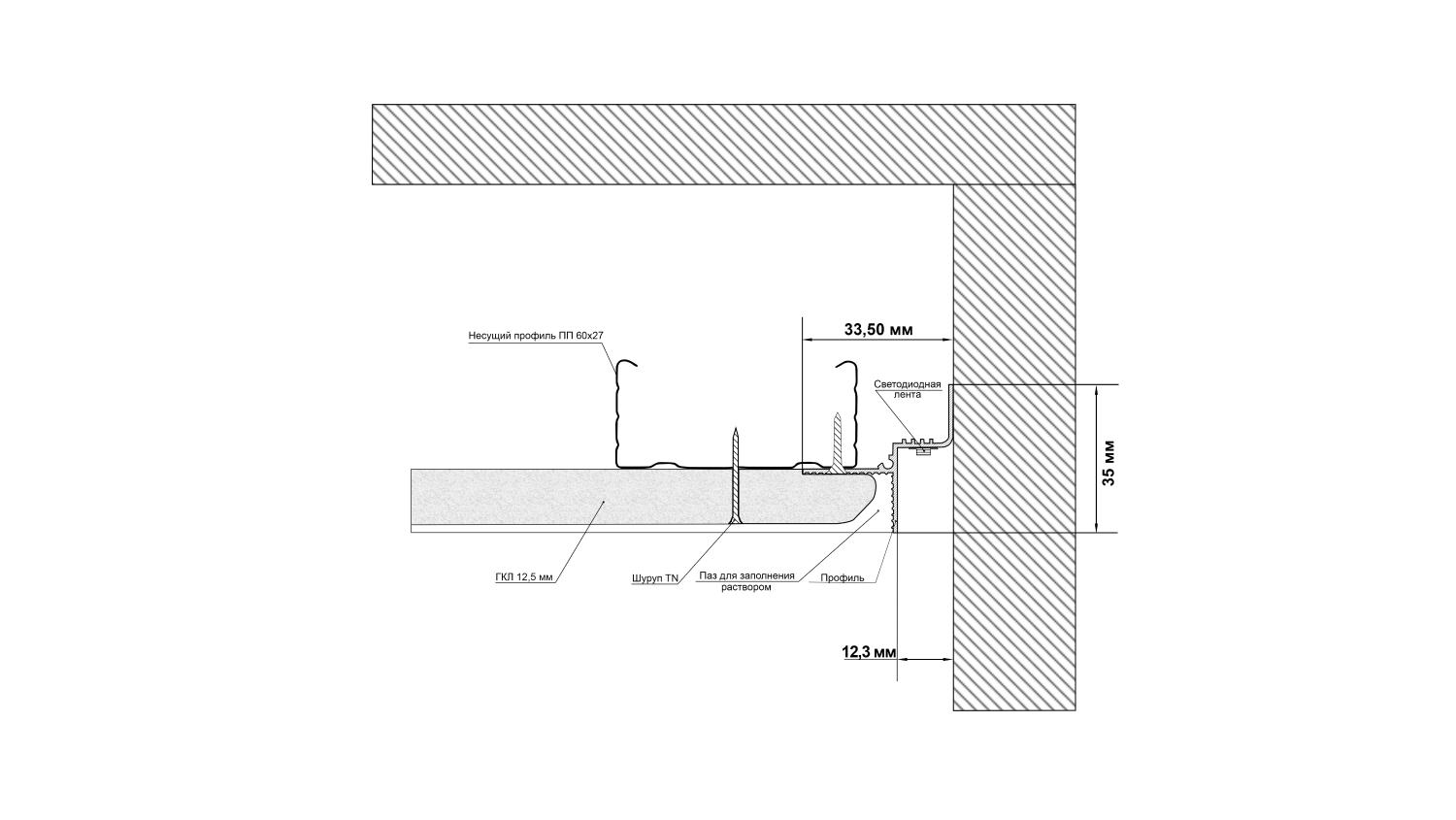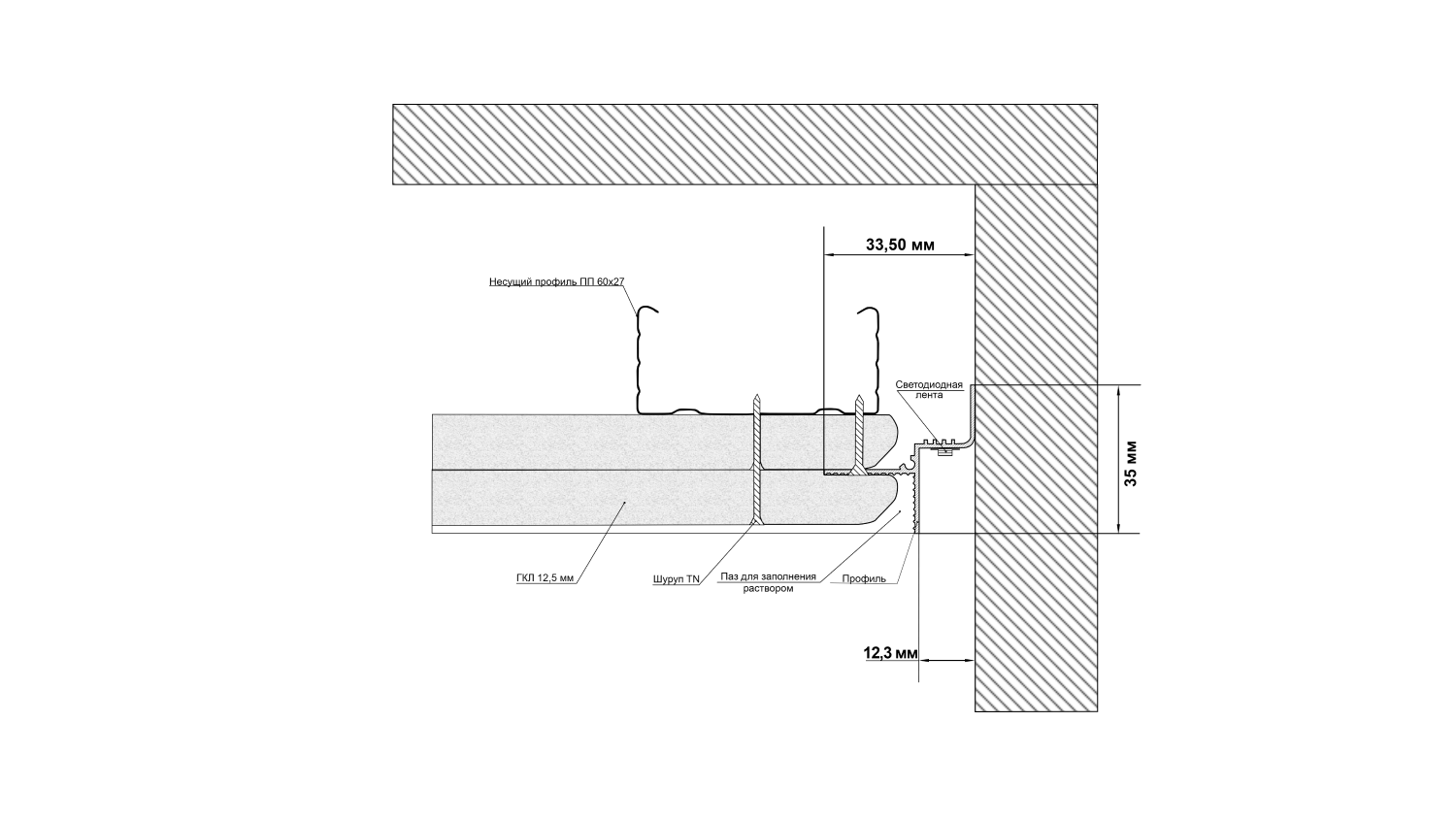 Безрамный «теневой» алюминиевый профиль FGC-12-BL-2