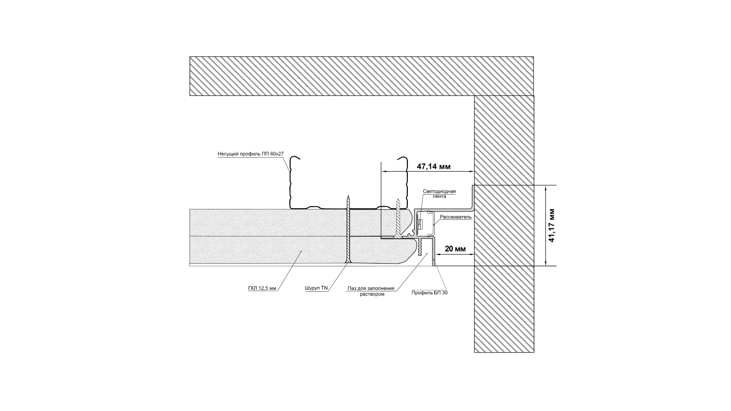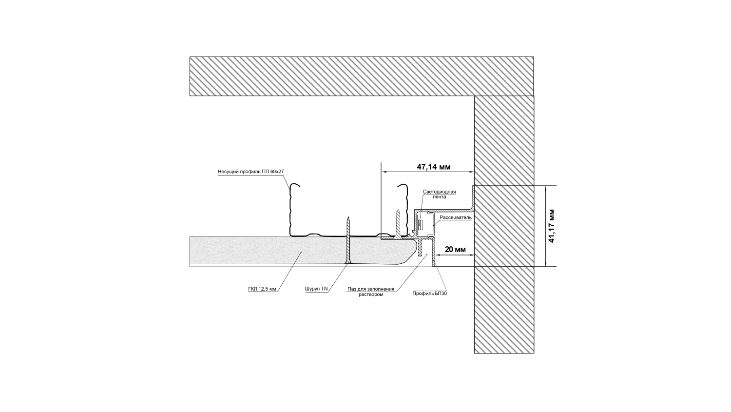 Безрамный «теневой» алюминиевый профиль FGC-20-BL-2