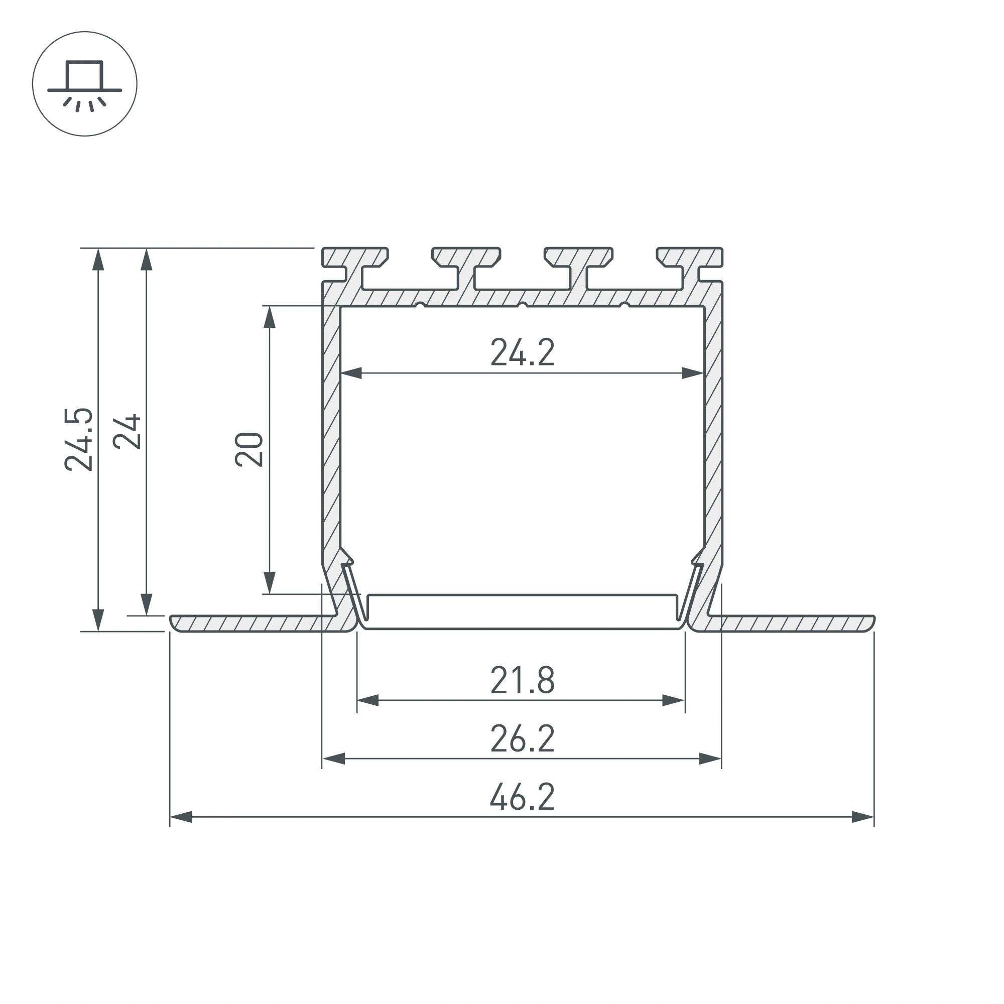 Встраиваемый профиль с накладным фланцем из анодированного алюминия для основного освещения и контурной подсветки. Габаритные размеры профиля составляют 2000 мм в длину, 46,2 мм в ширину и 24,5 мм в высоту. Площадка для установки светодиодных лент позволяет использовать ленту шириной до 24,2 мм и мощностью до 33,2 Вт/м. Это обеспечивает гибкость в выборе светодиодных лент и создает потрясающие световые решения. Экраны, заглушки и другие аксессуары не включены в комплект и приобретаются отдельно. Цена указана за 1 метр профиля. Отличное решение для создания современных световых проектов.