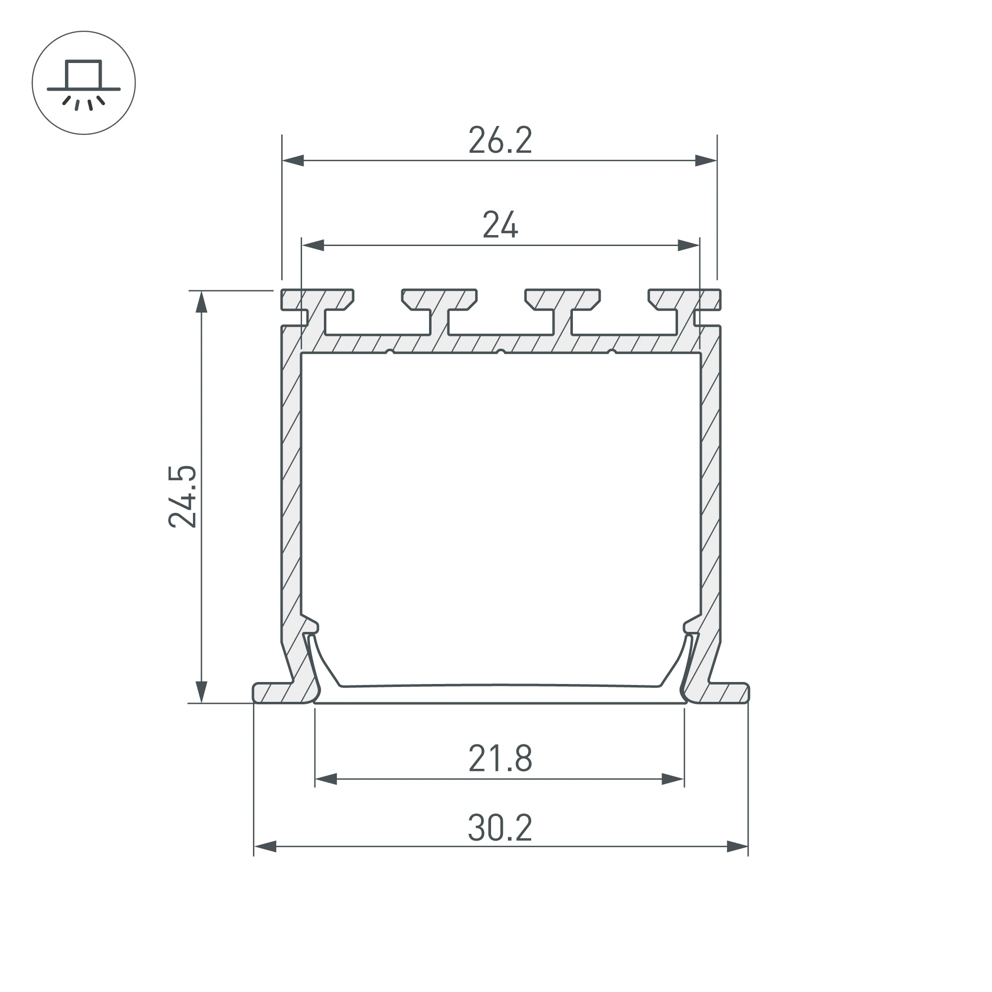 3м под заказ. Алюминиевый анодированный встраиваемый профиль для светодиодных лент и линеек. Габаритные размеры (L×W×H): 3000x30x25 мм. Ширина площадки для ленты 24 мм. Экраны, заглушки и другие аксессуары приобретаются отдельно. Цена за 1 метр.