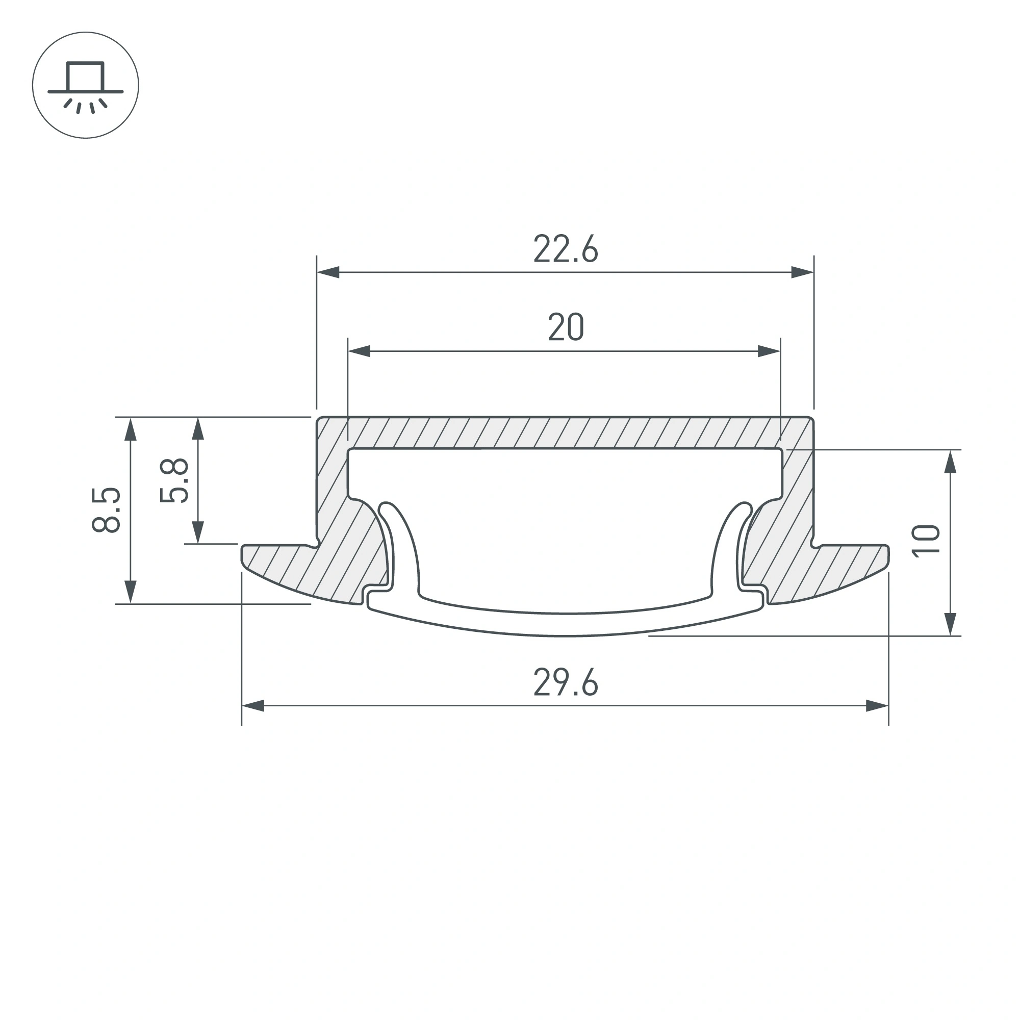 Встраиваемый профиль с накладным фланцем из анодированного алюминия в комплекте с матовым рассеивателем из поликарбоната со светопропусканием 40% идеально подходит для контурной подсветки. Габаритные размеры профиля составляют 2000 мм в длину, 29,6 мм в ширину и 8,5 мм в высоту. Площадка для установки светодиодных лент позволяет использовать ленту шириной до 20 мм и мощностью до 18,5 Вт/м. Это обеспечивает гибкость в выборе светодиодных лент и создает потрясающие световые решения. Заглушки и другие аксессуары не включены в комплект и приобретаются отдельно. Цена указана за комплект. Отличное решение для создания современных световых проектов.