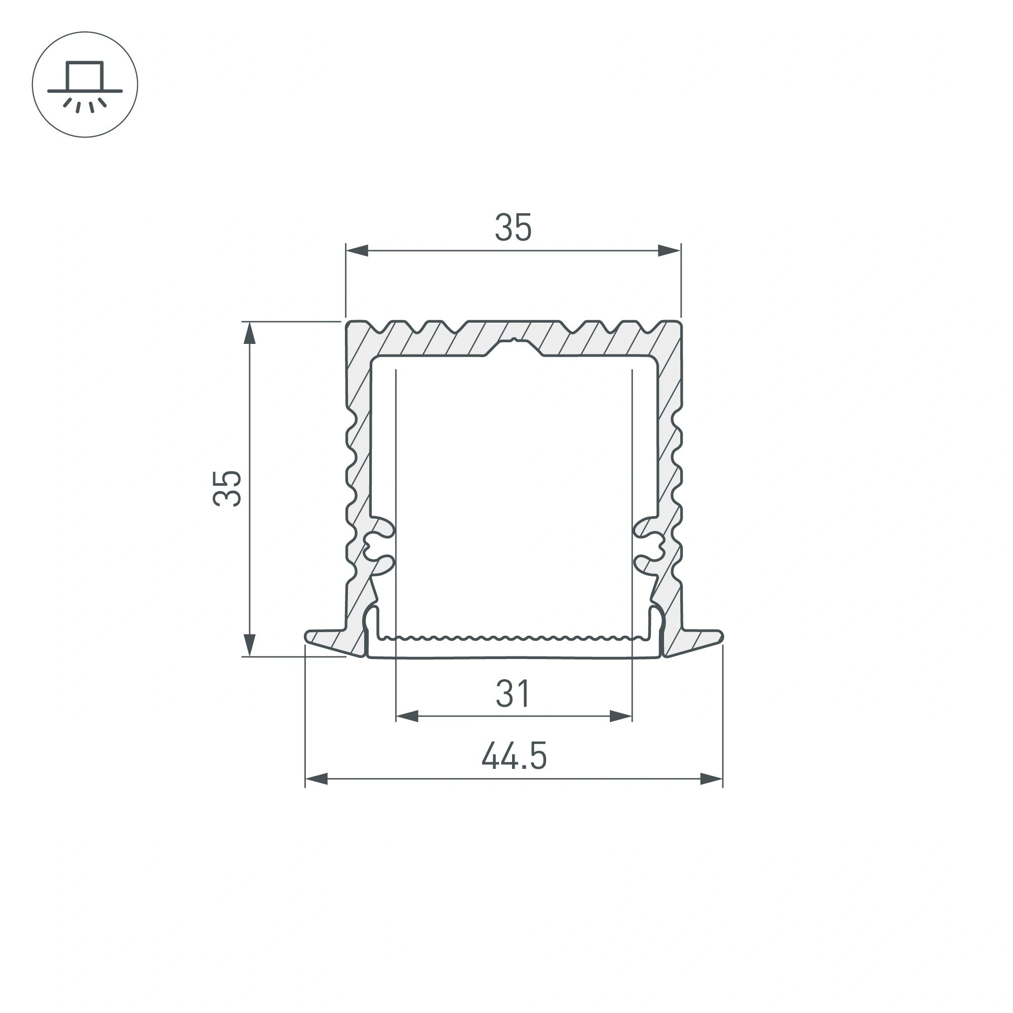 Комплект с экраном. Алюминиевый анодированный встраиваемый профиль для светодиодных лент и линеек. Габаритные размеры (L×W×H): 2000x44x35 мм. Ширина площадки для ленты 31 мм. Аксессуары приобретаются отдельно. Цена за комплект.