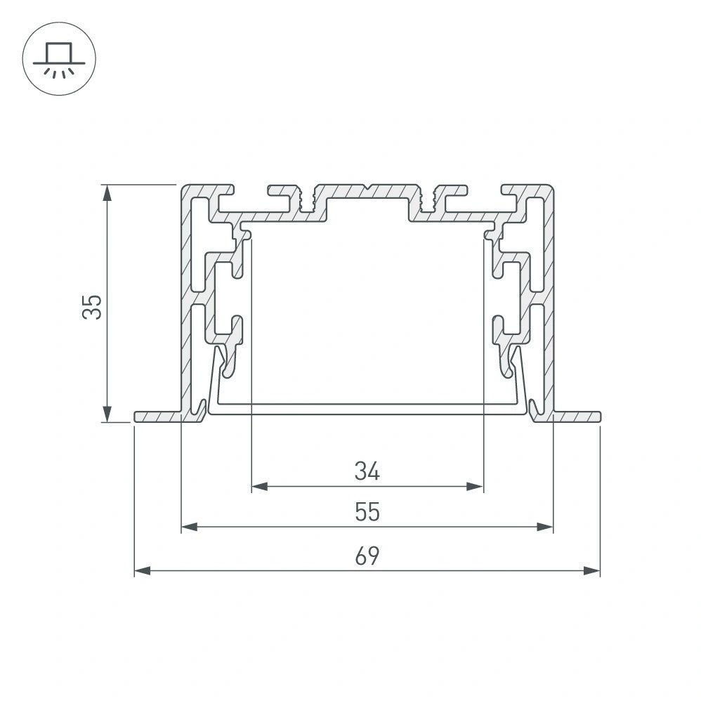 Встраиваемый профиль из анодированного алюминия с накладным фланцем в комплекте с матовым рассеивателем из поликарбоната со светопропусканием 85% идеально подходит для основного освещения и контурной подсветки. Габаритные размеры профиля составляют 2500 мм в длину, 69 мм в ширину и 35 мм в высоту. Площадка для установки светодиодных лент позволяет использовать ленту шириной до 34 мм и мощностью до 51 Вт/м. Это обеспечивает гибкость в выборе светодиодных лент и создает потрясающие световые решения. Заглушки и другие аксессуары не включены в комплект и приобретаются отдельно. Цена указана за комплект. Отличное решение для создания современных световых проектов.