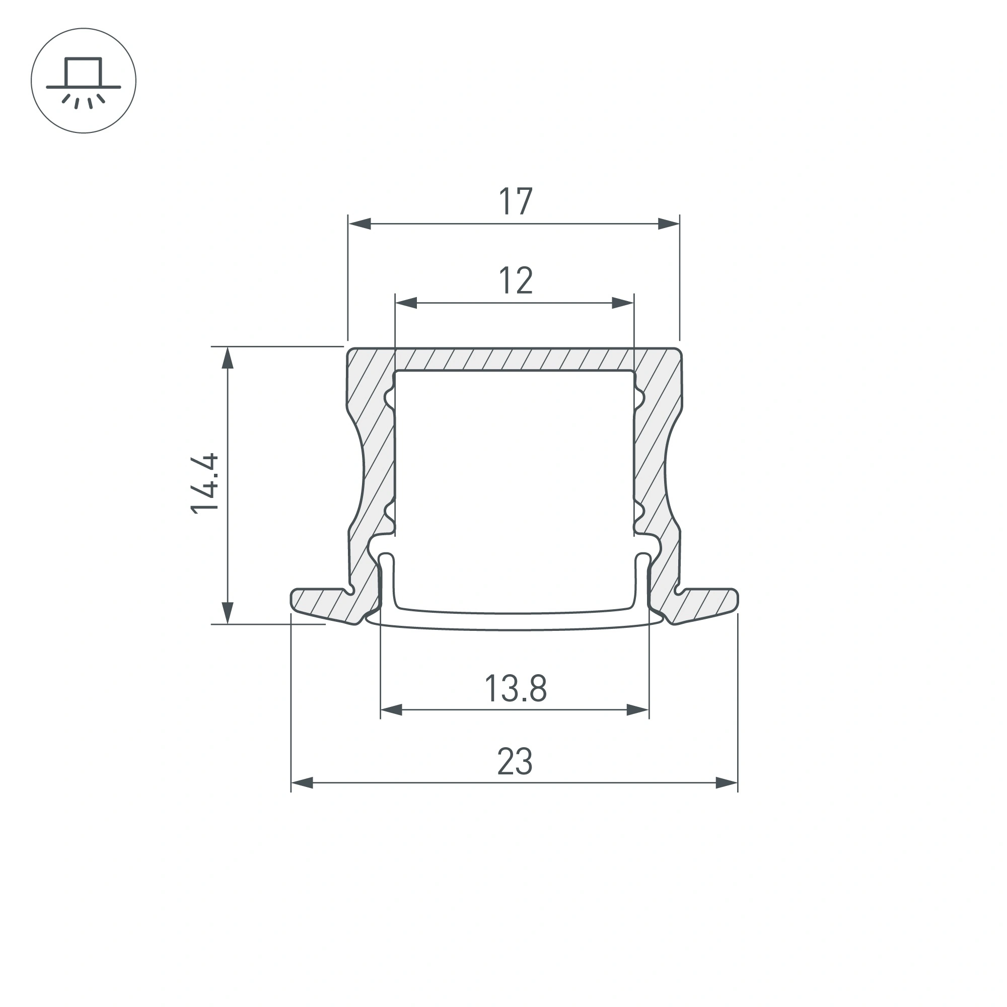 Алюминиевый анодированный встраиваемый профиль для светодиодных лент и линеек. Габаритные размеры (L×W×H): 2000x23x14,5 мм. Паз для установки 18мм. Ширина площадки для ленты 12,4 мм. Экраны, заглушки и другие аксессуары приобретаются отдельно. Цена за 1 метр.