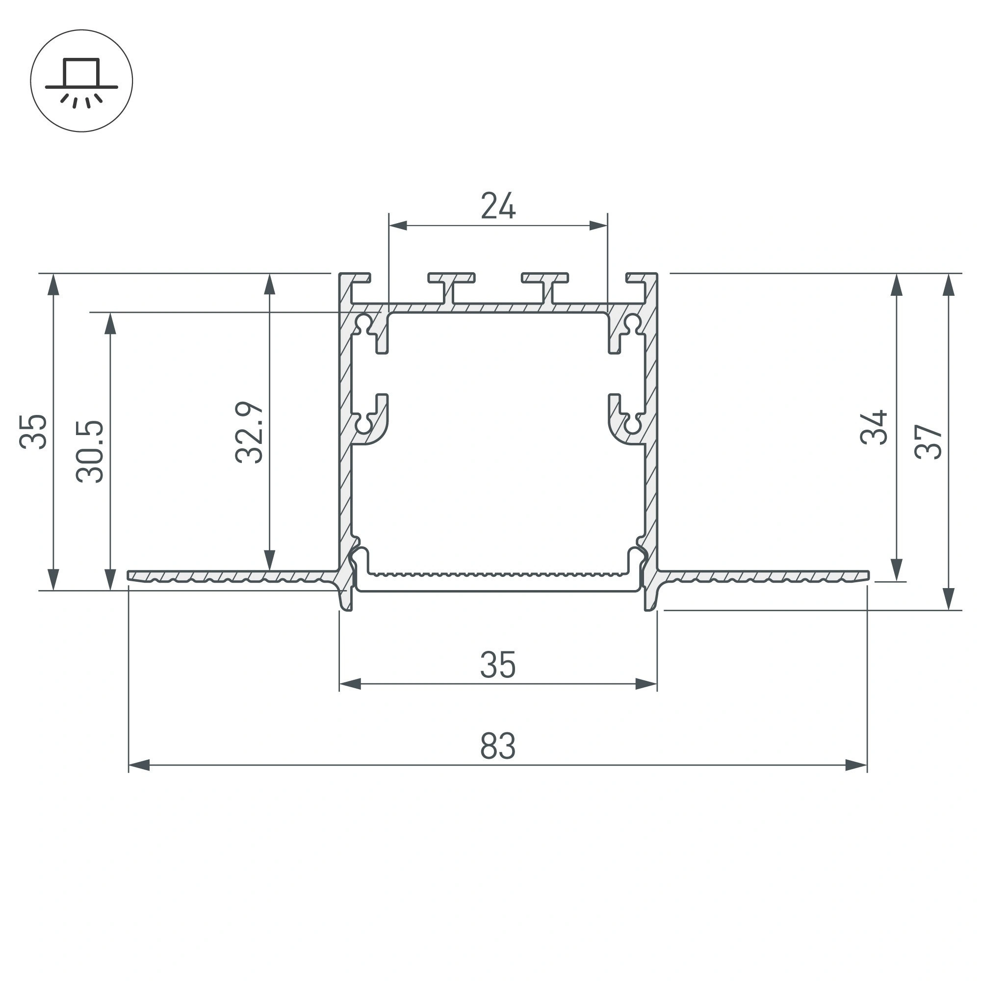 Алюминиевый светотехнический профиль для установки светодиодной ленты или линейки. Комплект с экраном и заглушками. Цвет серебристый. Длина 2000 мм, размер сечения 83х85 мм. Монтаж осуществляется встраиваемым способом. Фланцы закрашиваются, что позволяет скрыть алюминиевые части профиля, в результате видна только световая линия. Рассеиваемая тепловая мощность 52,5 Вт/м позволяет подобрать источник света как для основного освещения, так и для мягкой декоративной подсветки. Профиль охлаждает светодиодную ленту, продлевая срок её службы и сохраняя яркость, а также защищает от воздействия пыли, влаги и других внешних факторов. Высококачественное анодированное покрытие защищает профиль от внешних воздействий и коррозии. Светотехнический профиль - отличное решение для создания современных световых проектов.