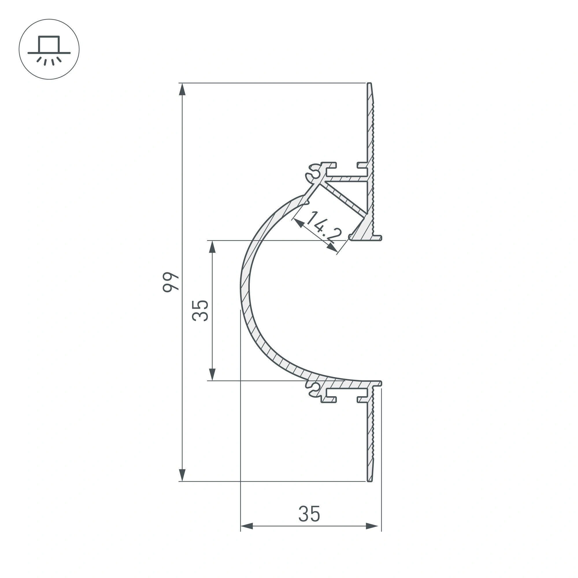 Алюминиевый профиль для светодиодных лент и линеек с боковым свечением. Цвет-белый RAL9003 (порошковая окраска). Габаритные размеры (L×W×H): 2000x99x35 мм. Ширина площадки для ленты 14,2 мм. Заглушки и другие аксессуары приобретаются отдельно. Цена за 1 метр.
