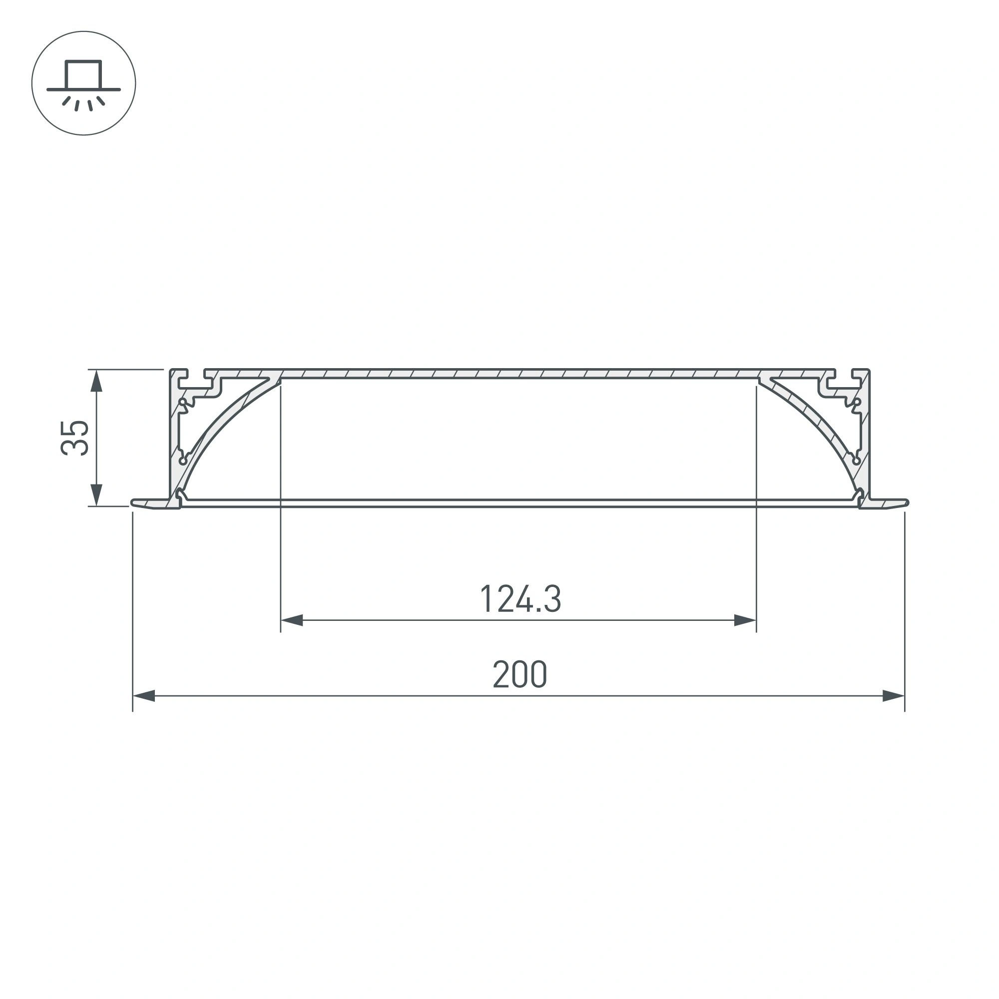 Встраиваемый профиль с накладным фланцем из анодированного алюминия для основного освещения и контурной подсветки в комплекте с матовым рассеивателем. Габаритные размеры профиля составляют 2000 мм в длину, 200 мм в ширину и 35 мм в высоту. Площадка для установки светодиодных лент позволяет использовать ленту шириной до 124 мм и мощностью до 86 Вт/м. Это обеспечивает гибкость в выборе светодиодных лент и создает потрясающие световые решения. Заглушки и другие аксессуары не включены в комплект и приобретаются отдельно. Цена указана за комплект. Отличное решение для создания современных световых проектов.