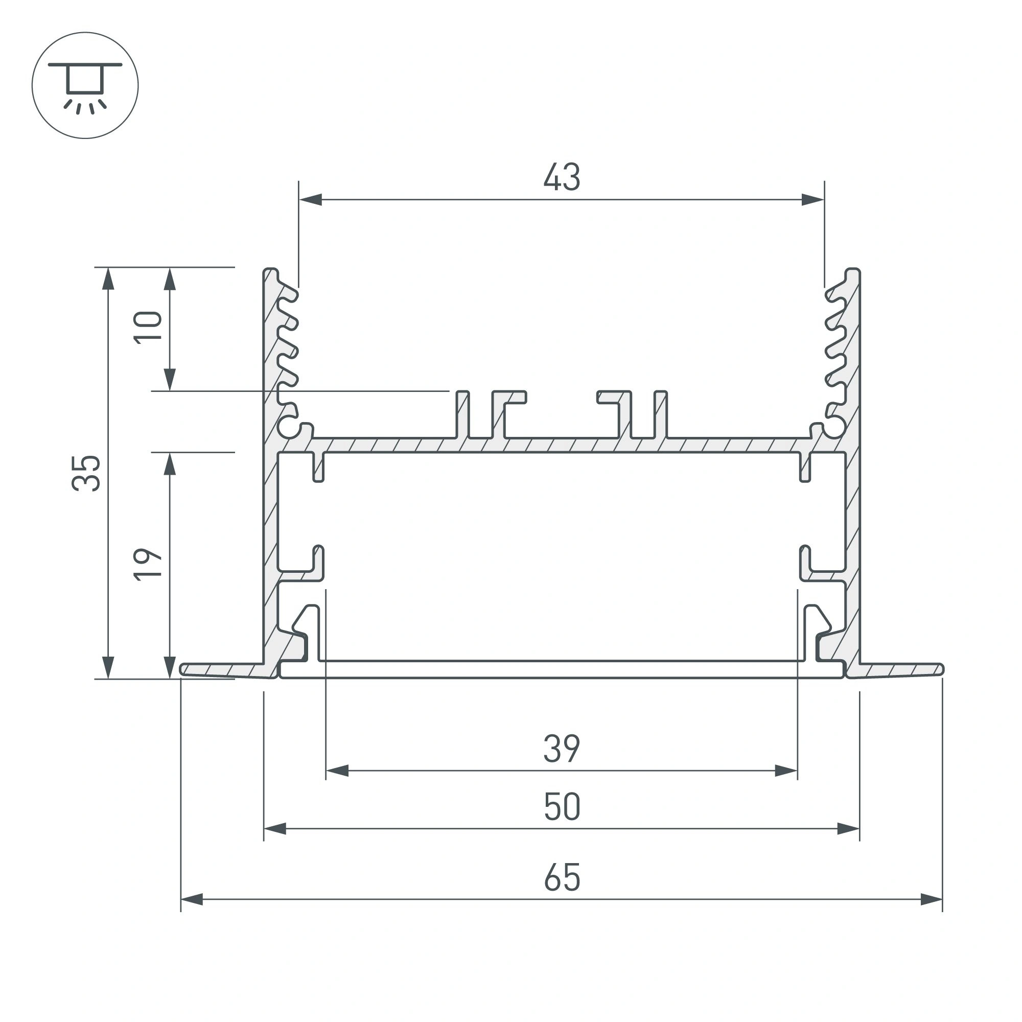 Встраиваемый профиль с накладным фланцем из анодированного алюминия для основной и контурной подсветки помещений. Габаритные размеры профиля составляют 2000 мм в длину, 65 мм в ширину и 35 мм в высоту. Площадка для установки светодиодных лент позволяет использовать ленту шириной до 50 мм и мощностью до 48,8 Вт/м. Это обеспечивает гибкость в выборе светодиодных лент и создает потрясающие световые решения. Экраны, заглушки и другие аксессуары не включены в комплект и приобретаются отдельно. Цена указана за 1 метр профиля. Отличное решение для создания современных световых проектов.