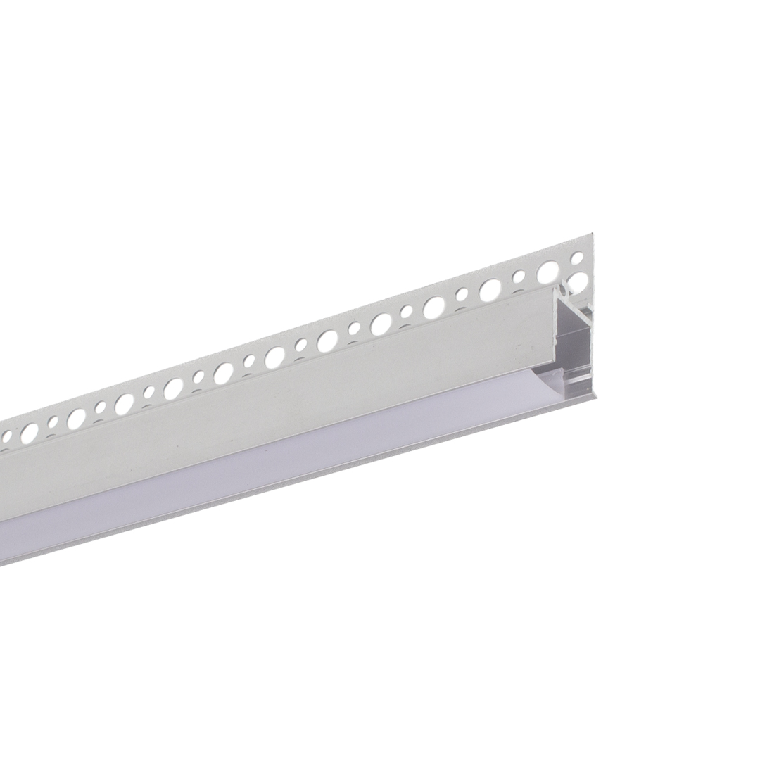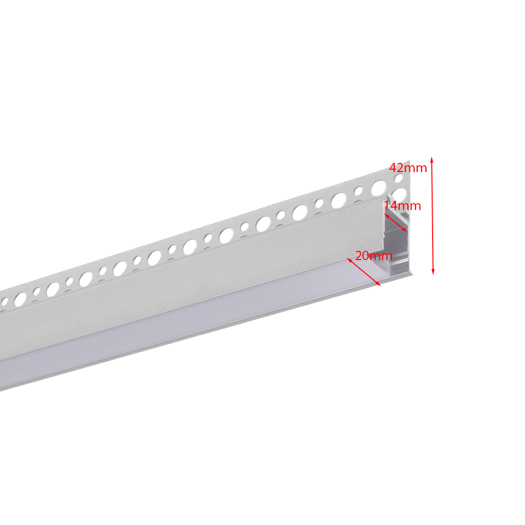Цена указана за комплект. Алюминиевый профиль встраиваемый в гипсокартон. Цвет белый. Для лент шириной до 14мм. Размеры 2000x42x20мм. Вес 650г. В комплекте с матовым рассеивателем. Данный вид профиля предназначен для создания световой линии на стене.