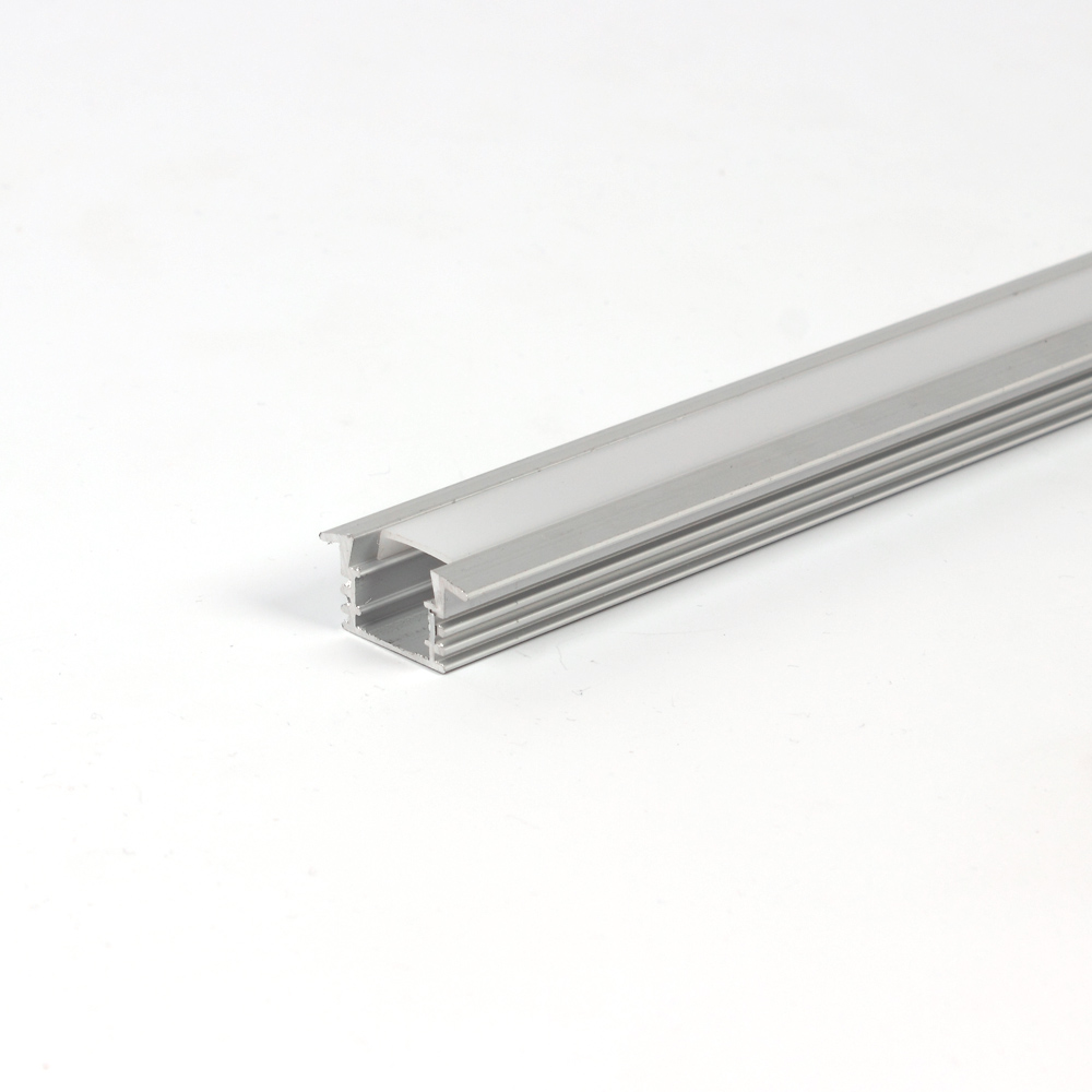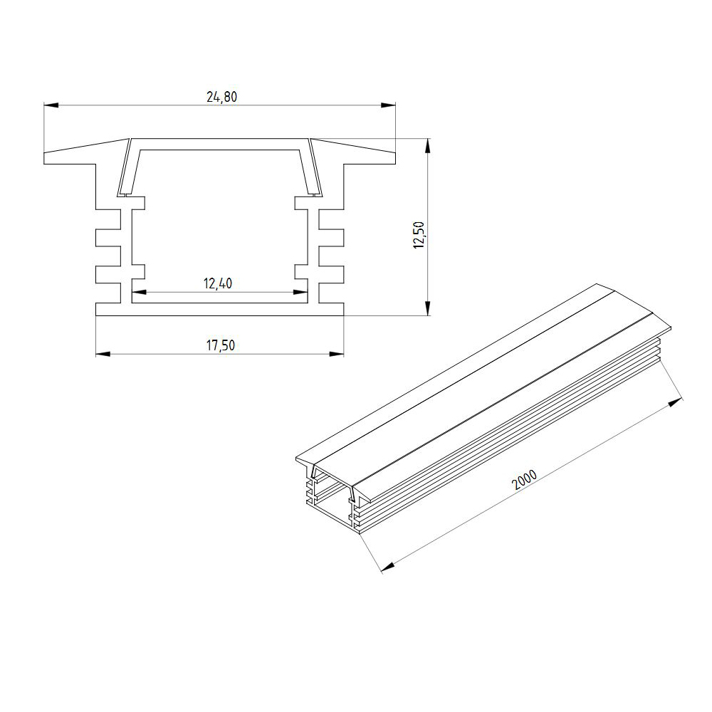 Алюминиевый анодированный профиль врезной. Для лент шириной до 12мм. Размеры 2000x24.8/17.5x12.5мм. В комплекте с матовым рассеивателем. Вес 360г.