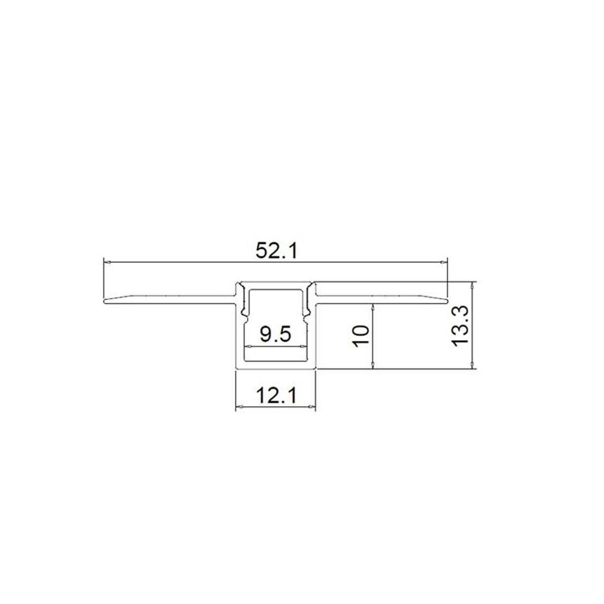 Цена указана за комплект. Алюминиевый анодированный профиль встраиваемый в гипсокартон. Для лент шириной до 9,5мм. Размеры 2500*52,1/12,1*13,3мм. В комплекте с матовым рассеивателем.