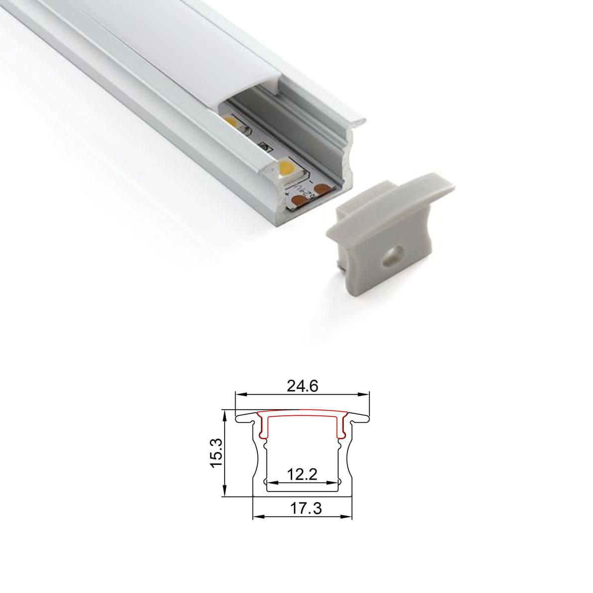 Цена указана за комплект. Алюминиевый анодированный встраиваемый профиль. Для лент шириной до 12мм. Размеры 2000x24,6/17,3x15,3мм. Вес 300г. В комплекте с рассеивателем.