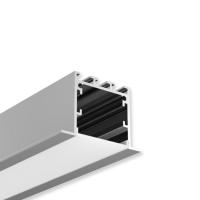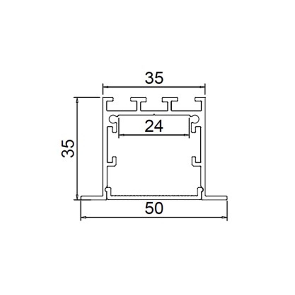 Цена указана за комплект. Алюминиевый анодированный профиль врезной. Для лент шириной до 24мм. Размеры 2500x50/35x35мм. Вес 1650г. В комплекте с матовым рассеивателем.