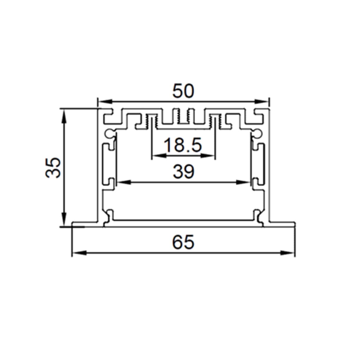 Цена указана за комплект. Алюминиевый анодированный врезной профиль . Для лент шириной до 39мм. Размеры 2500x65/50x35мм. В комплекте с матовым рассеивателем.