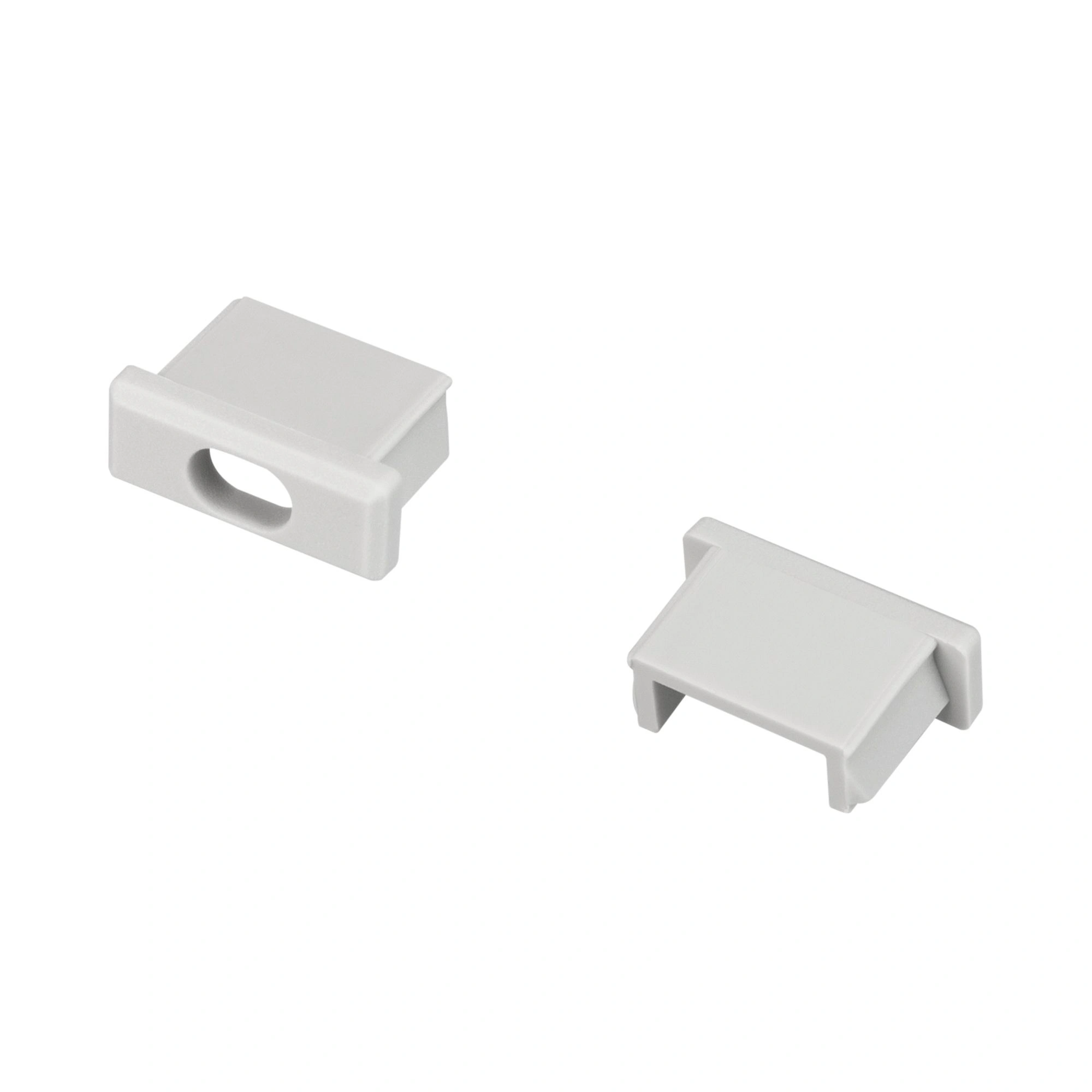 Серые заглушки с отверстием (2 шт.) для профиля MIC-2000. Придают законченный вид светильнику, а также защищают светодиодную ленту от внешних факторов (грязи, пыли и прочего). Отверстие в заглушке позволяет вывести кабель питания светодиодной ленты.