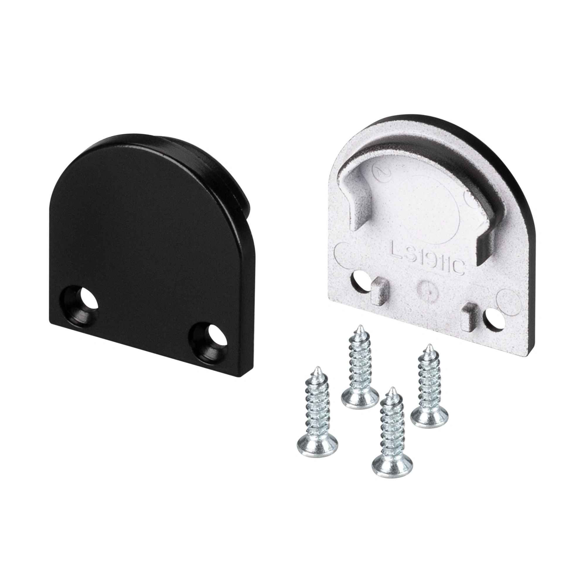 Пара заглушек чёрного цвета (без отверстия) для профиля SL-LINE-2011M BLACK под экран ROUND. В комплекте 2 заглушки, 4 шурупа. Цена за весь комплект.