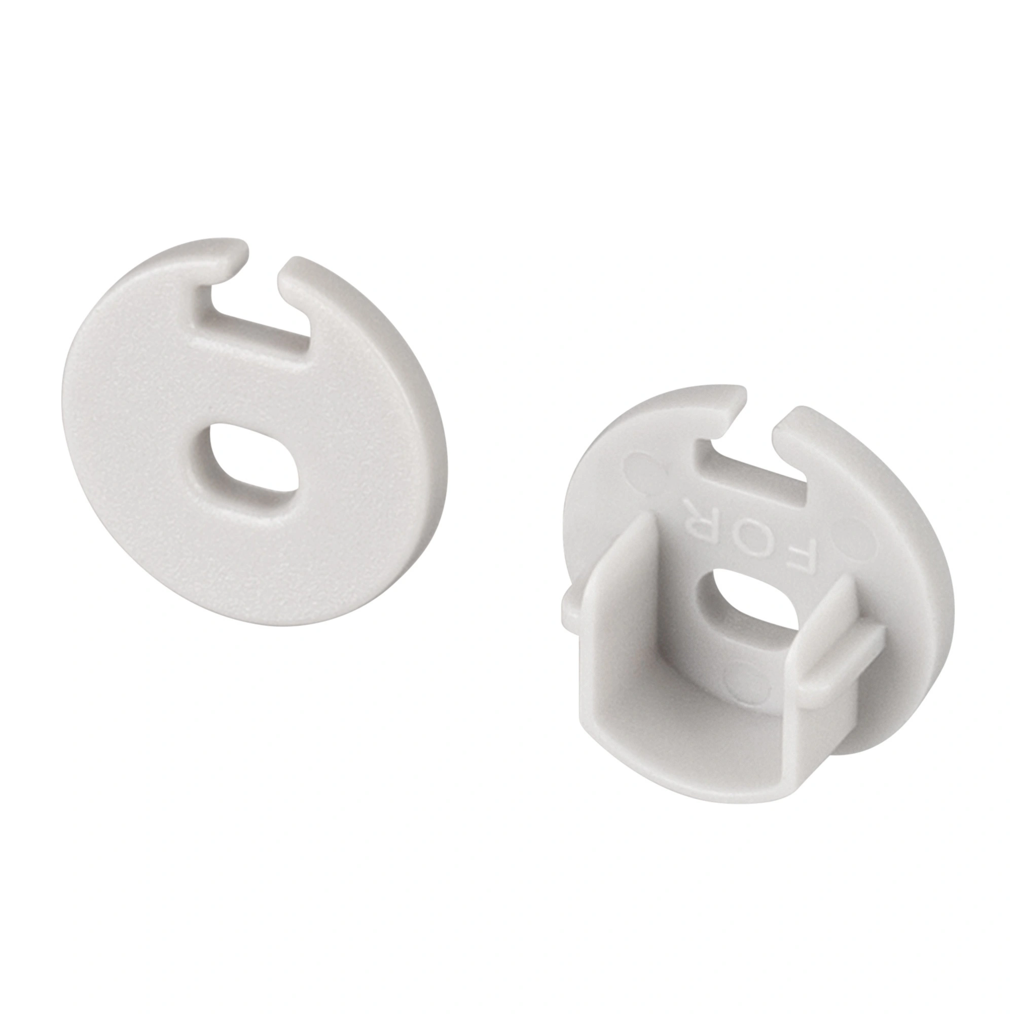 Серые заглушки (2 шт.) с отверстием для профиля ARH-ROUND-D16. Придают законченный вид светильнику, а также защищают светодиодную ленту от внешних факторов (грязи, пыли и прочего). Отверстие в заглушке позволяет вывести кабель питания светодиодной ленты.