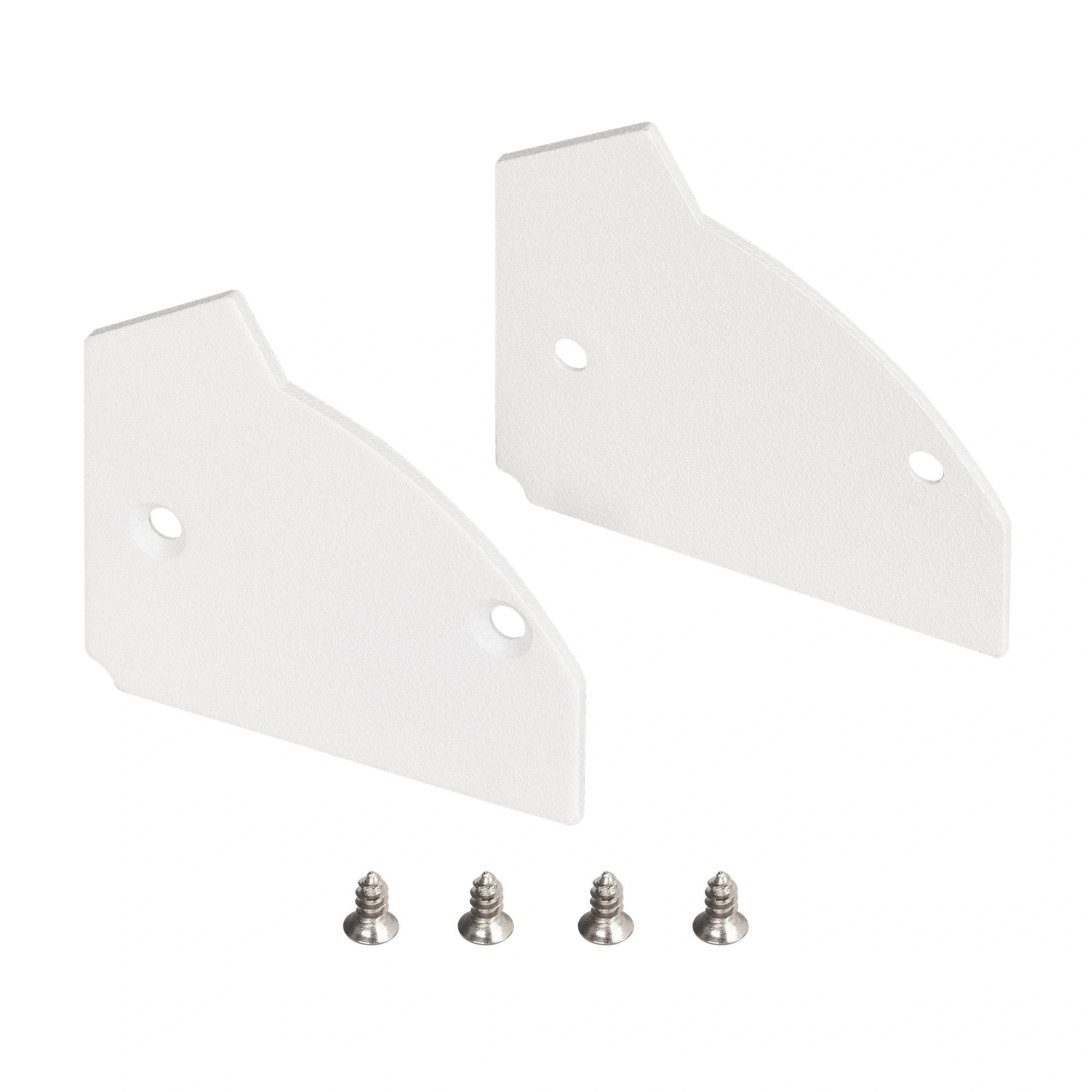 Металлические глухие заглушки белого цвета (2 шт.) для профиля ARH-CEIL-BEVEL. Придают законченный вид светильнику, а также защищают светодиодную ленту от внешних факторов (грязи, пыли и прочего).
