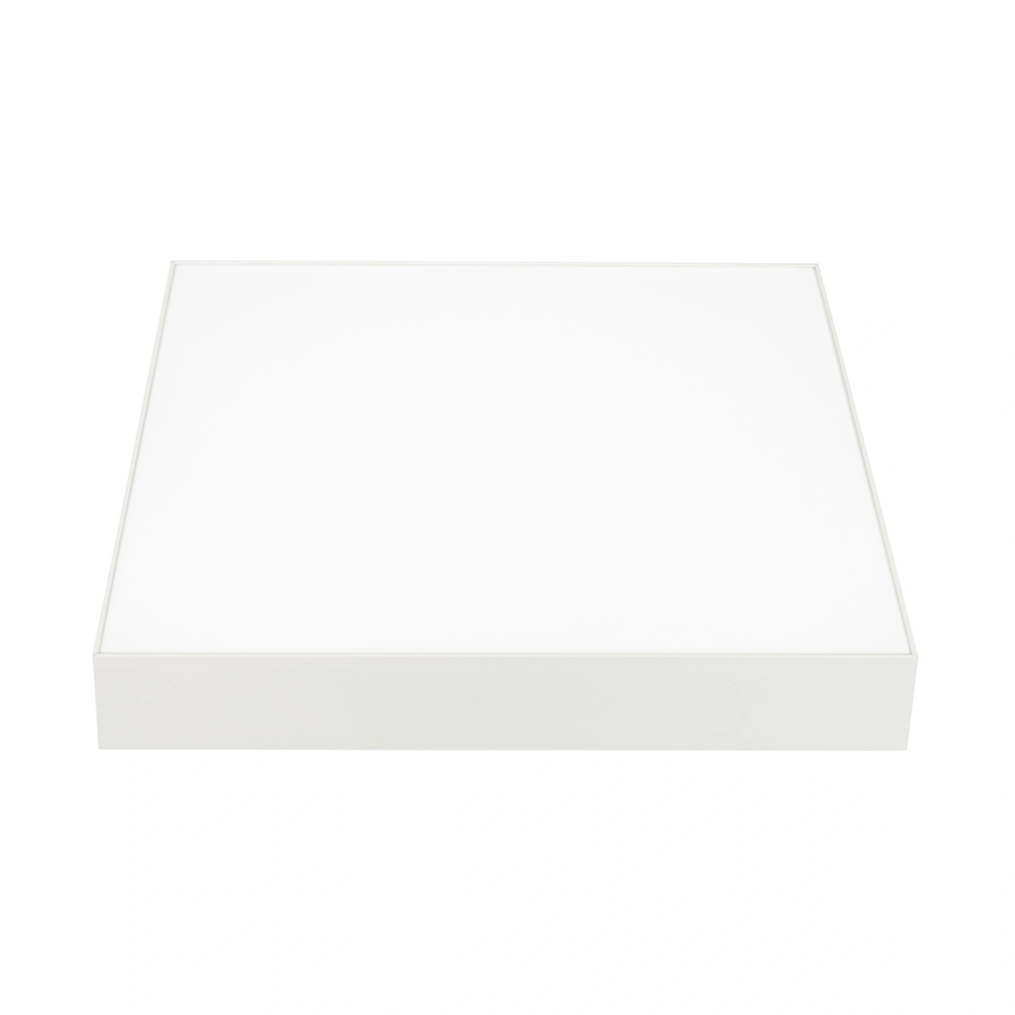 Интерьерный накладной светильник IM-QUADRO-EMERGENCY-3H-S400x400-44W Warm3000 (WH, 120 deg, 230V) мощностью 44 Вт с белым теплым цветом свечения (3000К), световым потоком 2590-3200 лм и высокой световой эффективностью 80 лм/Вт предназначен для создания яркого и качественного освещения в интерьере. Высокий индекс цветопередачи CRI>90 удовлетворяет требованиям большинства проектов, так как обеспечивает отличную передачу цветов. Угол освещения составляет 120°, что подходит для основного освещения помещений. Матовый экран светильника сделан из поликарбоната и обеспечивает равномерное освещение без видимости точек светодиодов. Размеры корпуса в форме квадрата и возможность монтажа накладным способом позволяют легко монтировать и совмещать модель с различными интерьерами. Корпус изготовлен из окрашенного алюминия белого цвета, что придает светильнику не только современный стиль, но и обеспечивает защиту от пыли на уровне IP40. Светильник предназначен для применения внутри помещений, где нет контакта с водой или другими жидкостями. Снабжен встроенным блоком аварийного питания, что дает возможность безопасно и быстро подключать его напрямую к сети 230В, а так же поддерживать работу в автономном режиме до 3ч. Пульсация менее 5% обеспечивает комфортное освещение без мерцания. Идеально подходит для освещения офисных, торговых, производственных помещений, а также мест общего пользования.